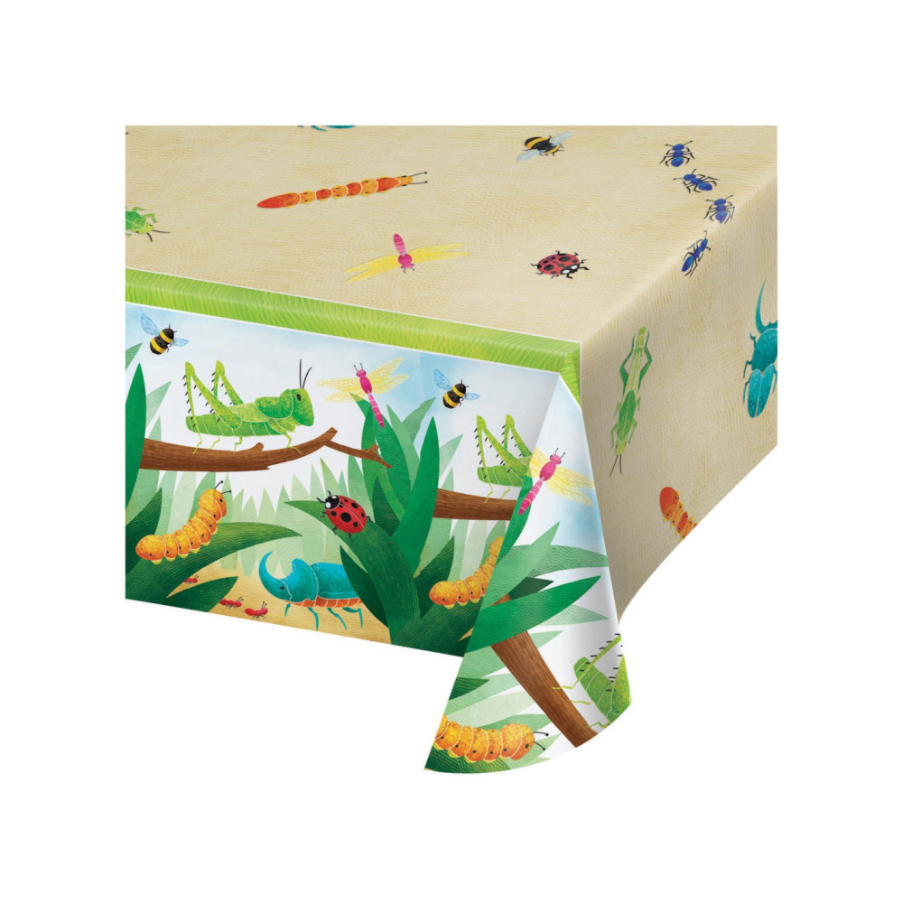 Plastic tafelkleed met het thema 'birthday bugs'. Het kleed heeft een uitgevouwen maat van 137 x 259 centimeter. Leuk om te combineren met de andere 'birthday bugs'-feestartikelen!