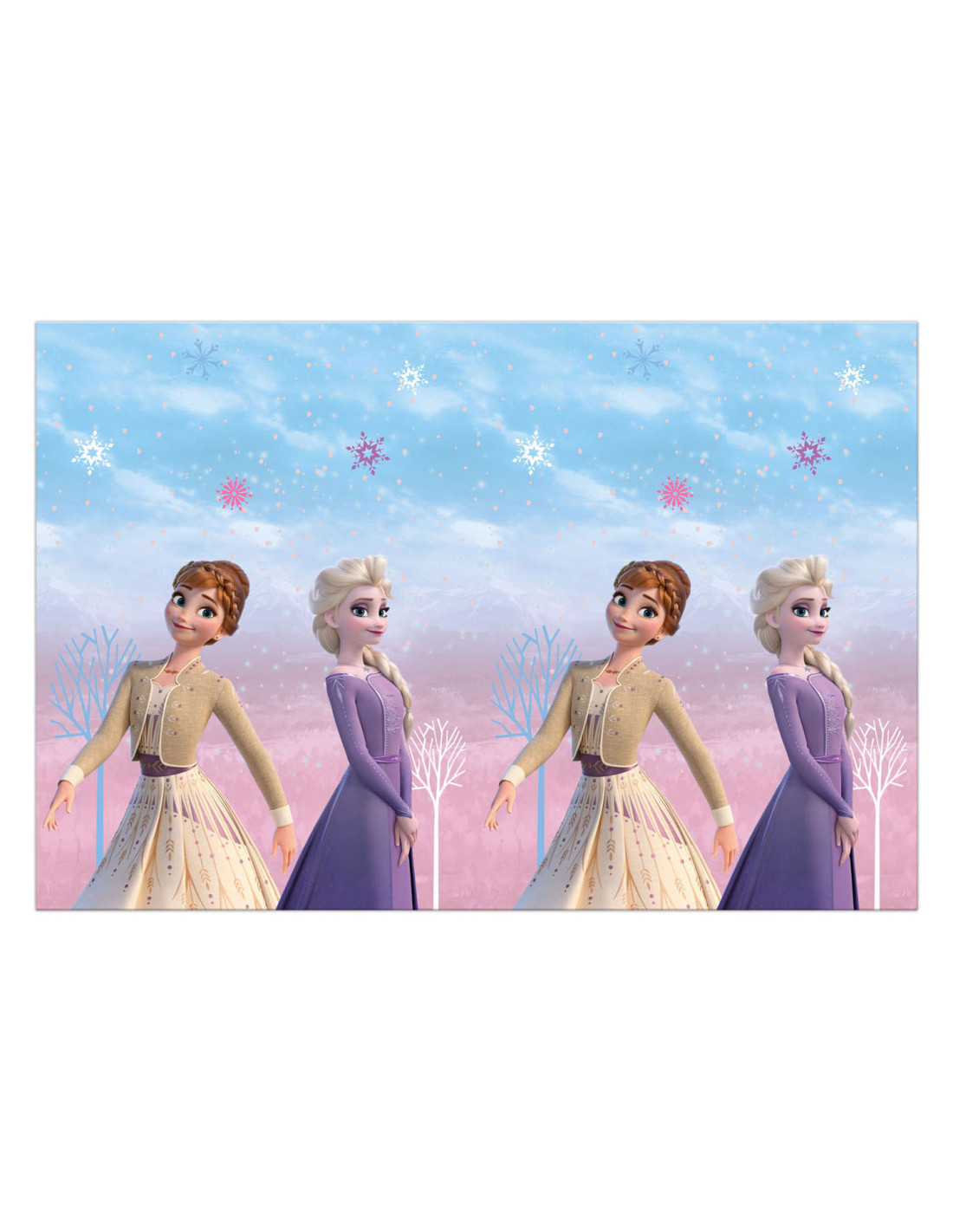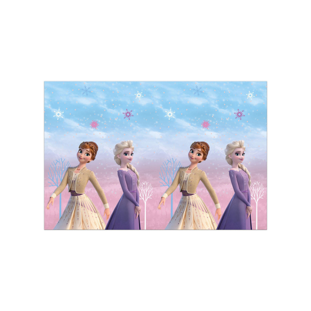 Tafelkleed met afbeelding van Elsa en Anna uit Frozen II. Afmeting: 120 bij 180 cm.
