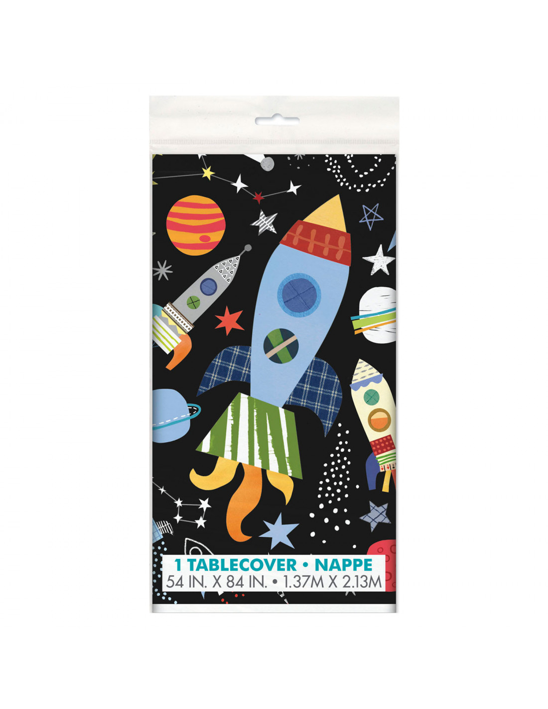 Met een afbeelding van raketten en planeten is dit tafelkleed perfect voor verjaardagsfeestjes, ruimtevaartthema-evenementen of gewoon een gezellig samenzijn met een kosmische twist. Het plastic materiaal maakt het gemakkelijk schoon te vegen, wat betekent dat je je geen zorgen hoeft te maken over eventuele morsingen tijdens het feest.