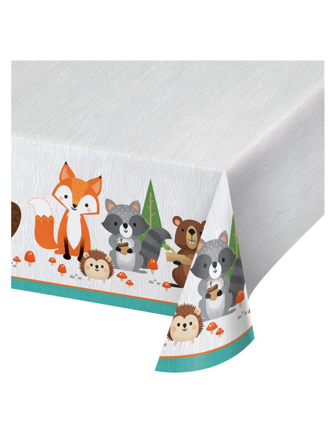 Plastic tafelkleed met bosdieren. Het tafelkleed heeft een uitgevouwen maat van 137 x 259 cm. Perfect voor een verjaardags-/kinderfeestje met bosdierenthema!