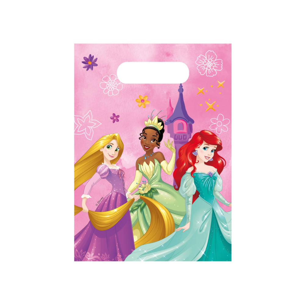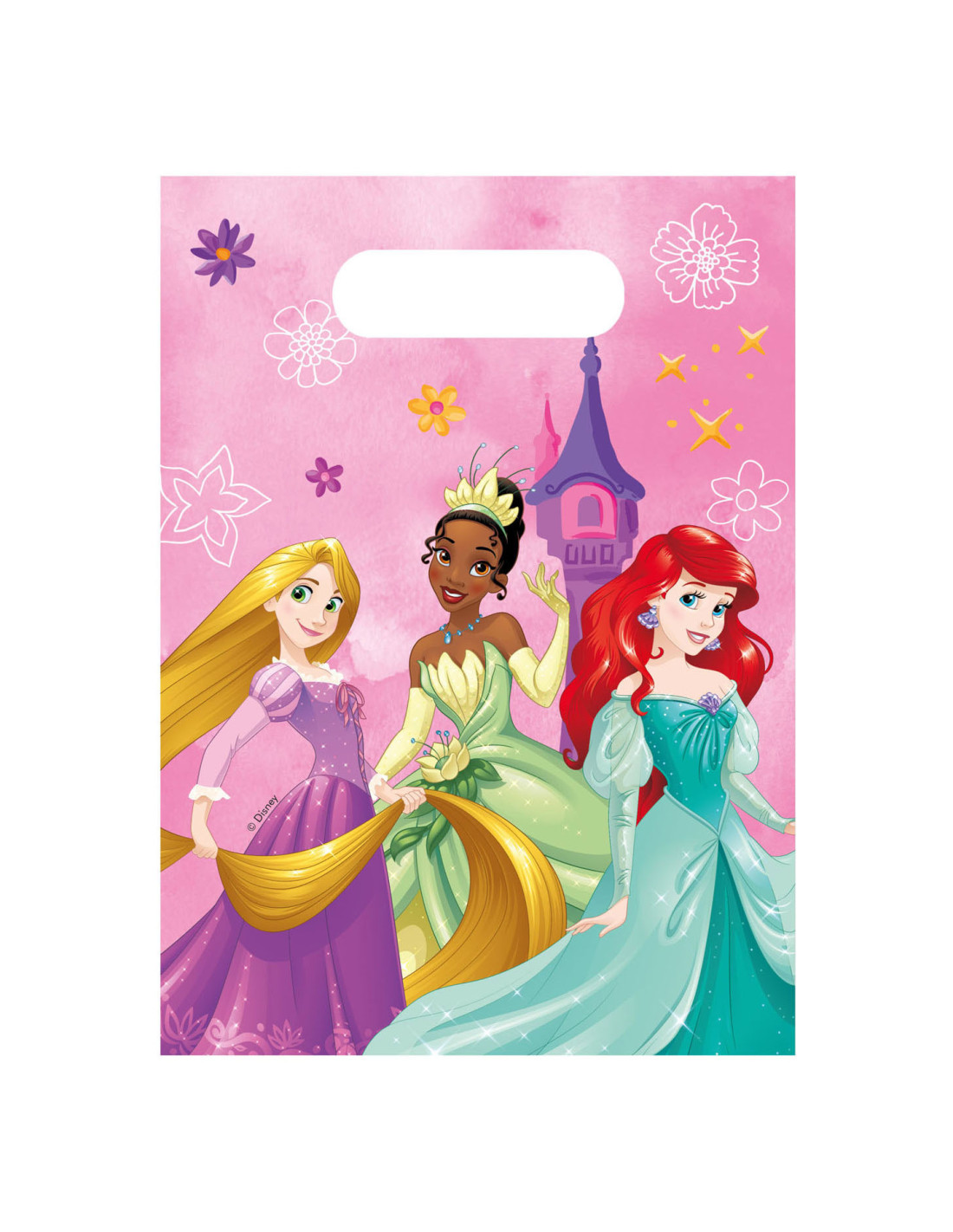 Set van 6 papieren feestzakjes met Disney Princess-print en een handvat. Gemaakt van FSC-gecertificeerd papier. Leuk om te combineren met de bijpassende feestartikelen uit de prinsessenfeestlijn!