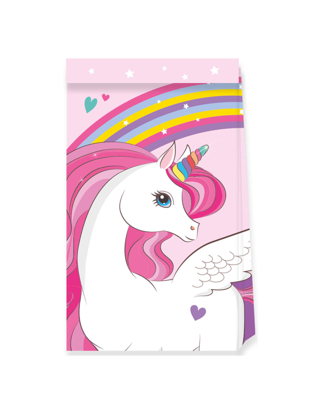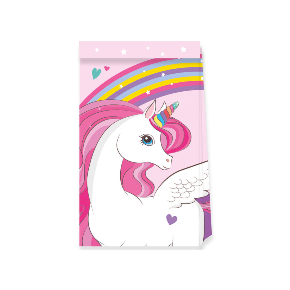 Set van 4 papieren feestzakjes met eenhoornprint. Gemaakt van FSC-gecertificeerd papier. Leuk om te combineren met de bijpassende feestartikelen uit de unicorn feestlijn!