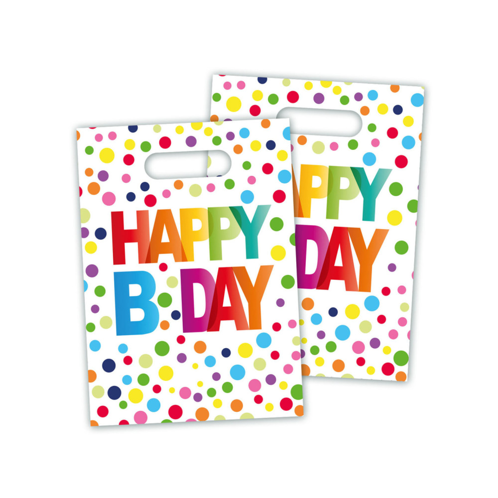 Verras je vriendjes na afloop van je verjaardagsfeestje met deze Happy Birthday Confetti Uitdeelzakjes. Stop er snoepgoed in en een leuk cadeautje als herinnering aan jouw feestje. Per 8 stuks verpakt.