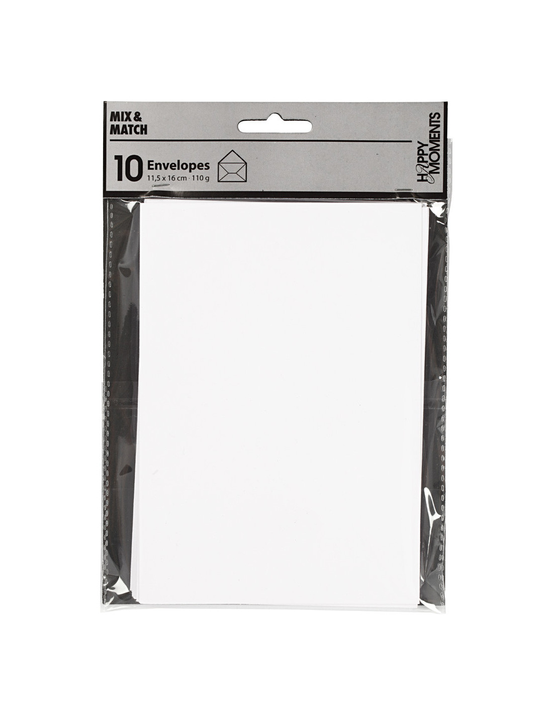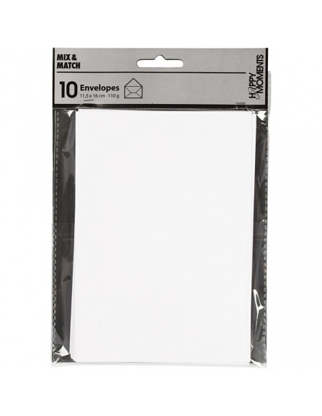 De set bevat tien enveloppen met een gewicht van 110 gram en een afmeting van 11,5x16 centimeter.