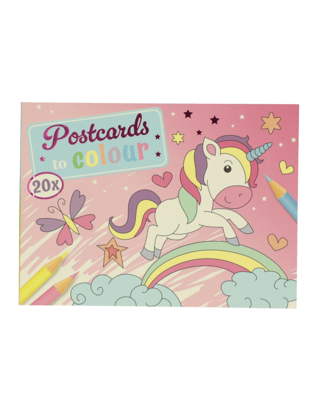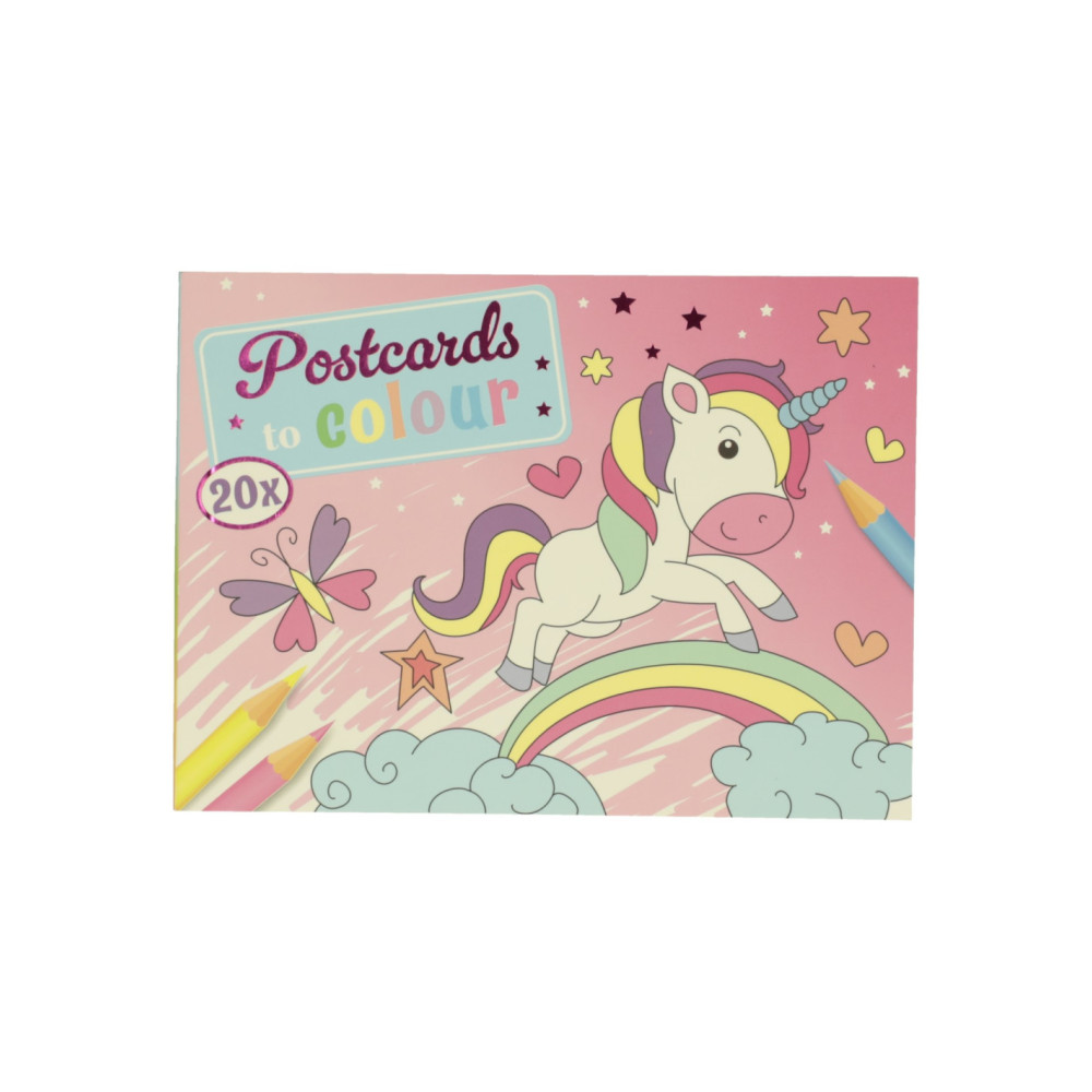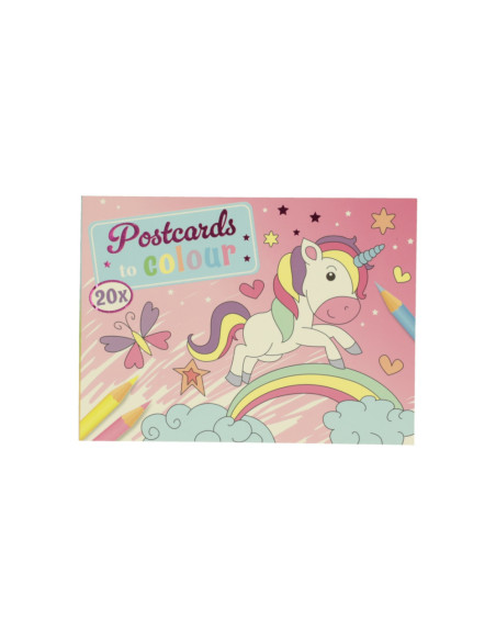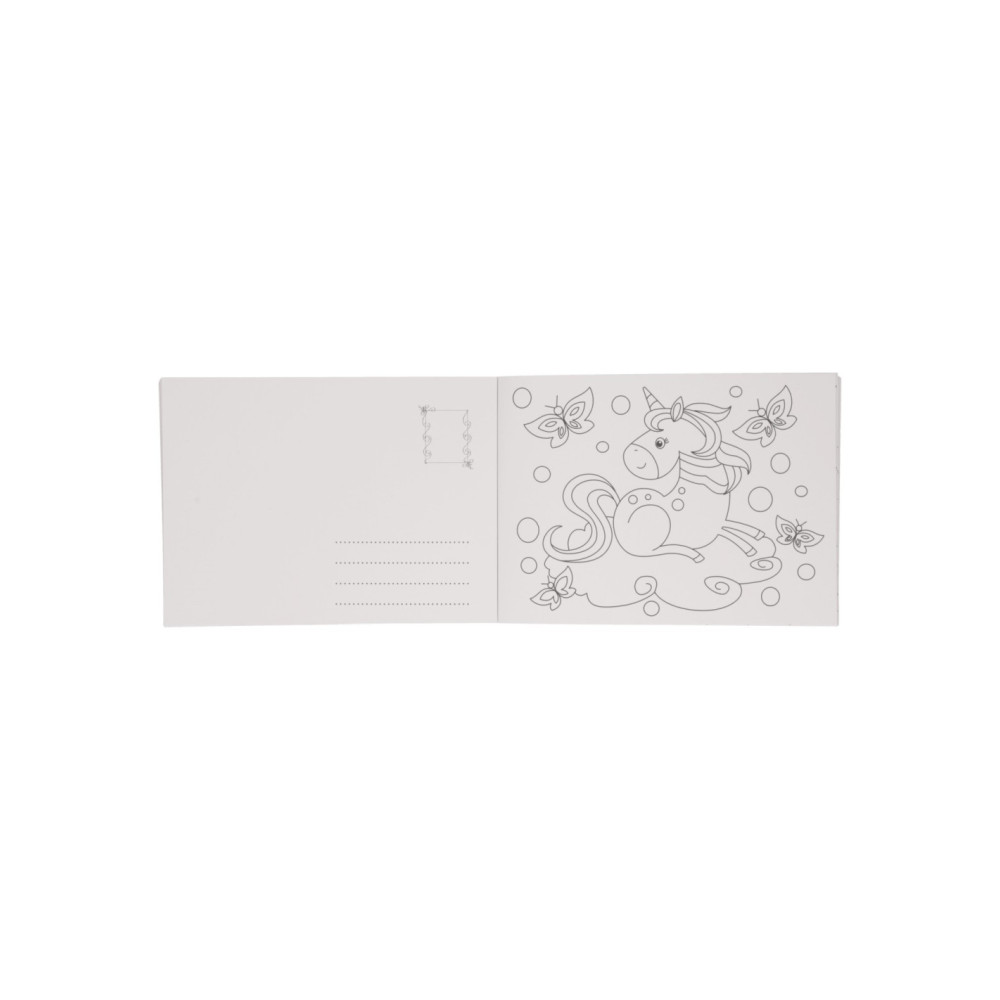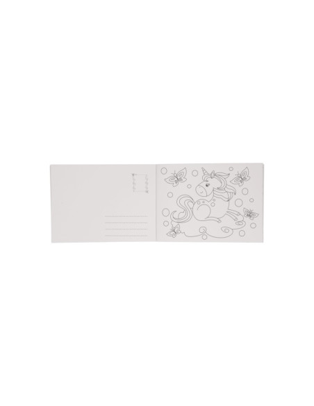 Dit kleurboek bevat verschillende kleine ansichtkaarten, elk met een afbeelding van eenhoorns op de voorkant. Op de achterkant is er ruimte om een tekst te schrijven en een postzegel te plakken. Het tekenboekje bevat 20 verschillende kleurplaten en heeft een formaat van 16,5 x 12 cm.