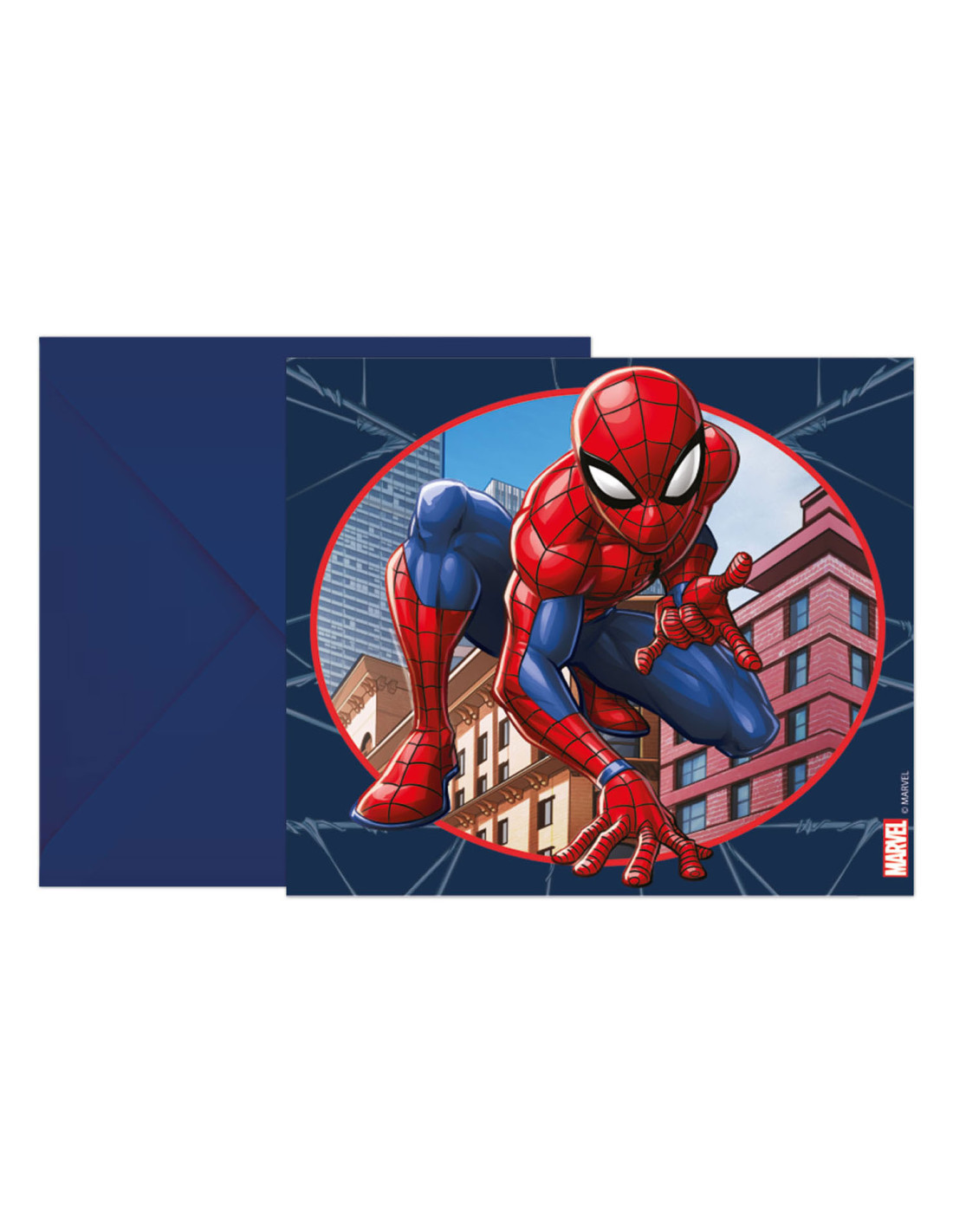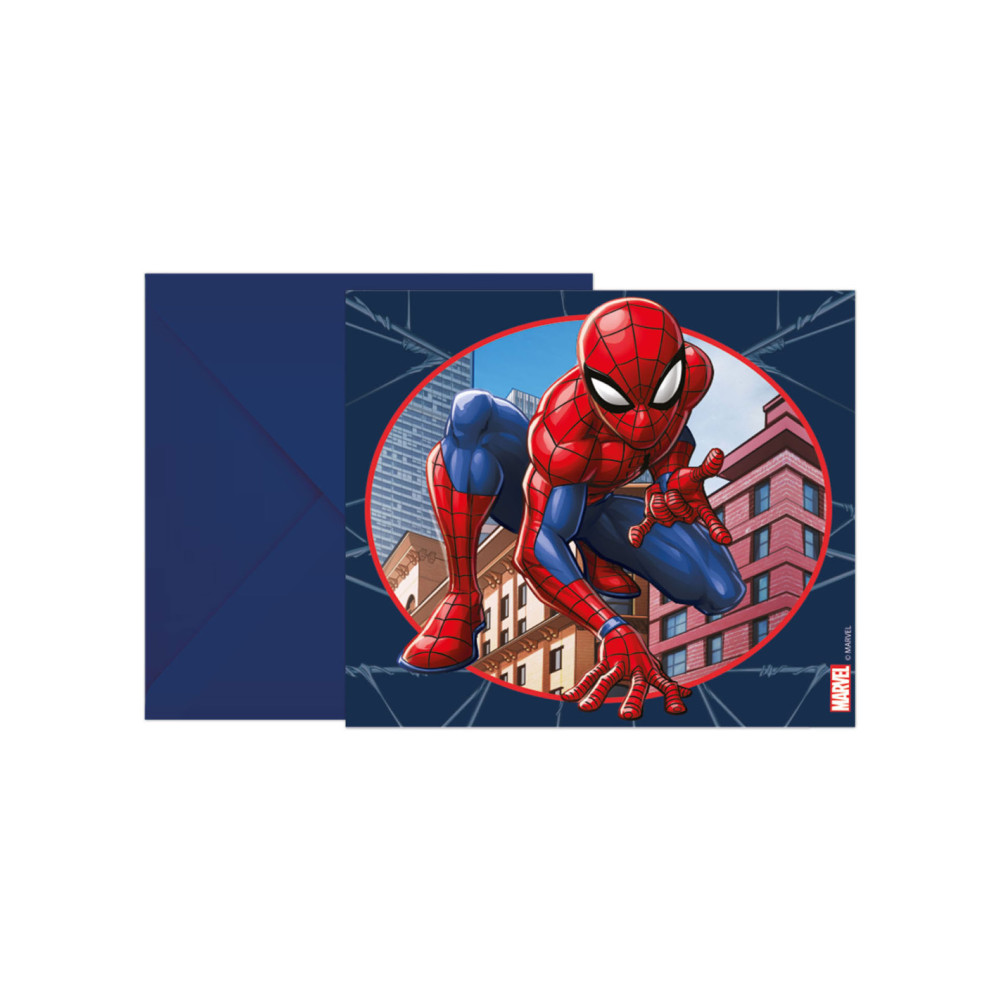 6 stuks uitnodigingen en enveloppen van je favoriete superheld Spiderman. Gemaakt van FSC-gecertificeerd papier.