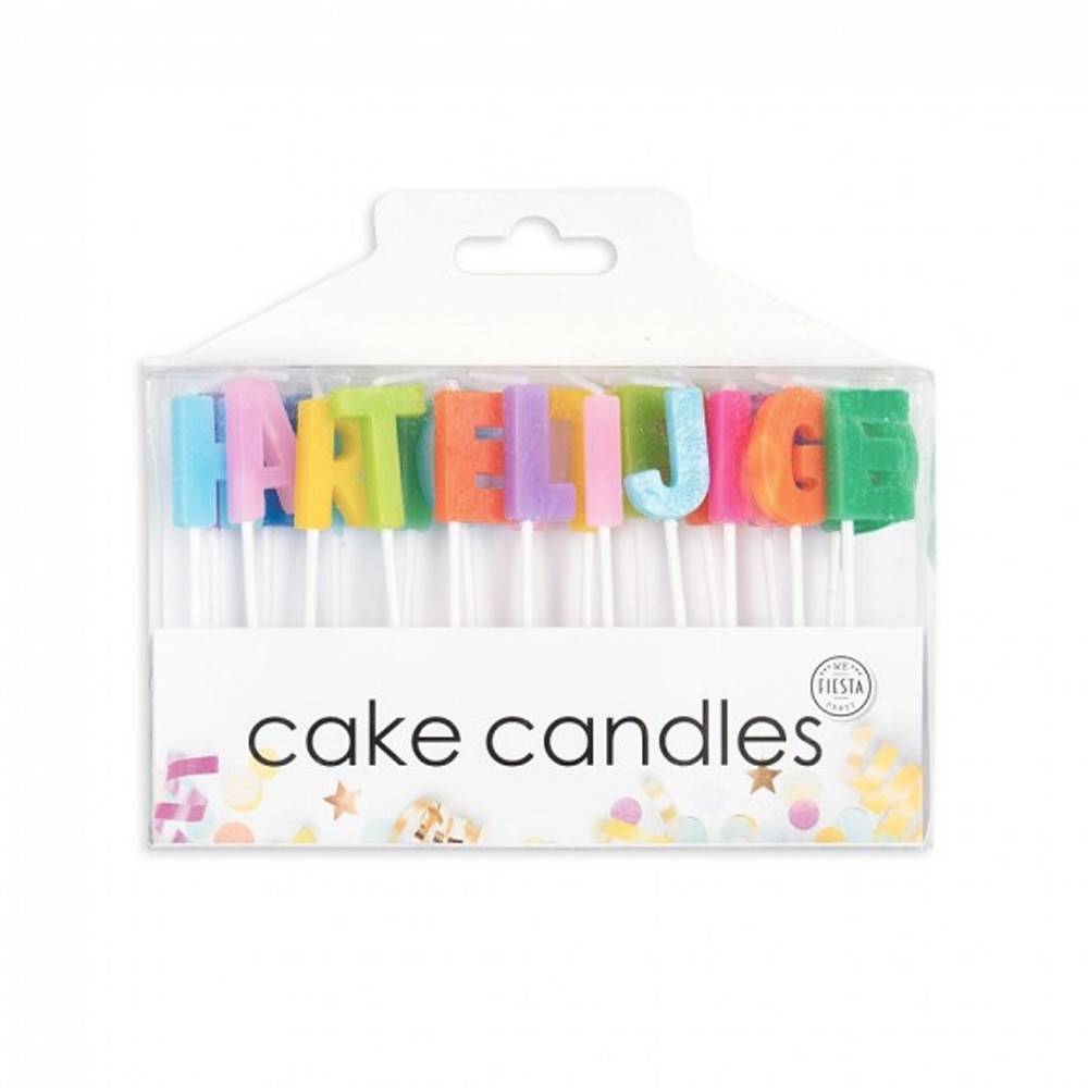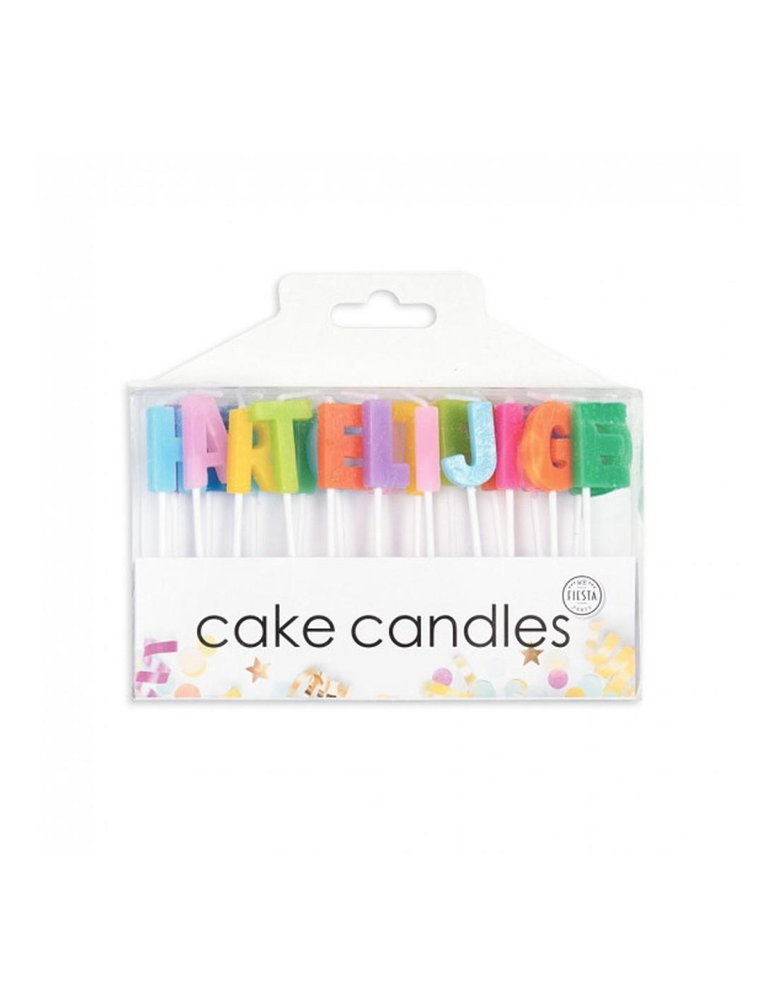 Met deze set kaarsje met de tekst 'Hartelijk Gefeliciteerd'.
