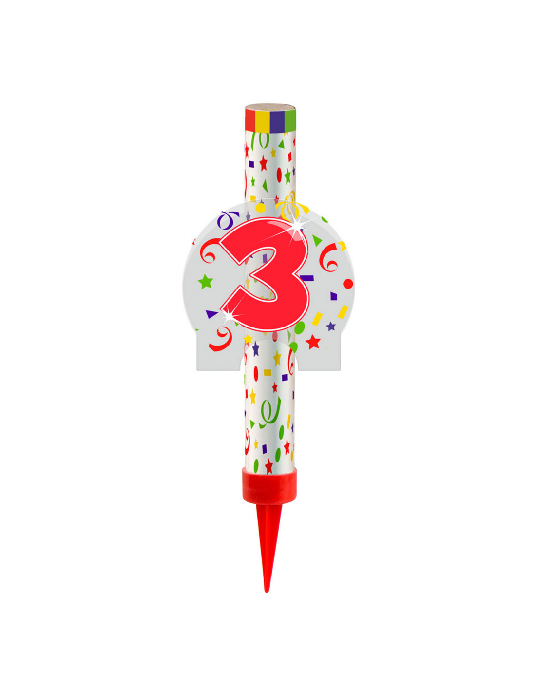 Feest ijsfontein in de vorm van het cijfer 3. Leuk voor op het gebak of een ijstaart. Brandtijd ca. 45 seconden. De ijsfontein is geschikt voor gebruik binnenshuis. Inclusief handig aansteekstokje.