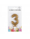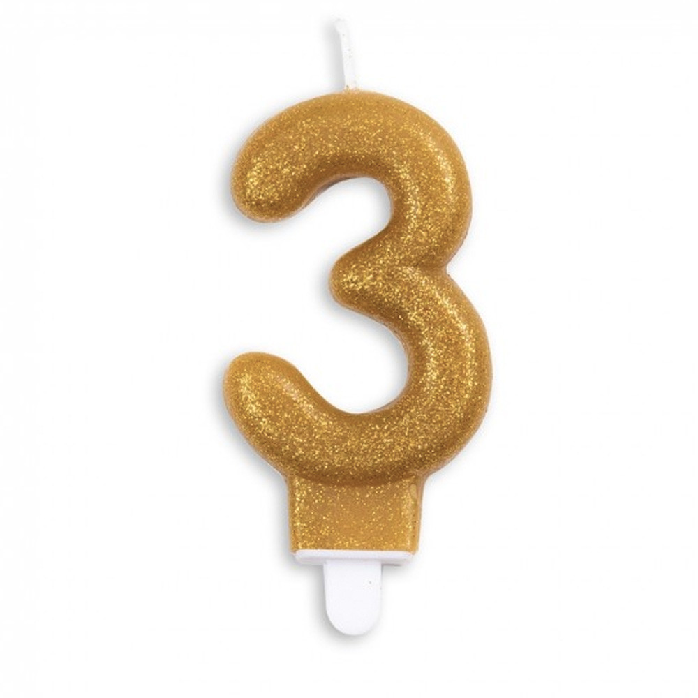 Is er iemand 3 geworden of moet er een jubileum worden gevierd? Met deze prachtige gouden cijferkaars ziet iedereen dat het een feestje is! Door de prikker kan de kaars gemakkelijk in een taart of cake worden geprikt.
