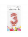 Is er iemand 3 geworden of moet er een jubileum worden gevierd? Met deze prachtige rose goud cijferkaars ziet iedereen dat het een feestje is! Door de prikker kan de kaars gemakkelijk in een taart of cake worden geprikt.