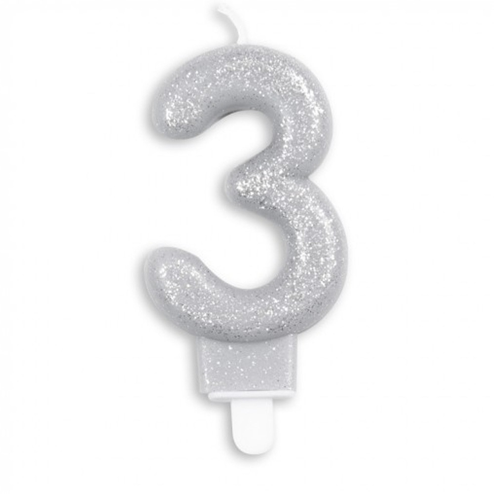 Is er iemand 3 geworden of moet er een jubileum worden gevierd? Met deze prachtige zilveren cijferkaars ziet iedereen dat het een feestje is! Door de prikker kan de kaars gemakkelijk in een taart of cake worden geprikt.