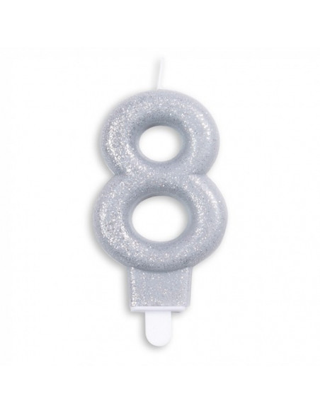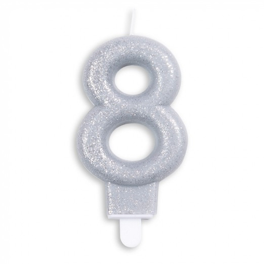 Is er iemand 8 geworden of moet er een jubileum worden gevierd? Met deze prachtige zilveren cijferkaars ziet iedereen dat het een feestje is! Door de prikker kan de kaars gemakkelijk in een taart of cake worden geprikt.