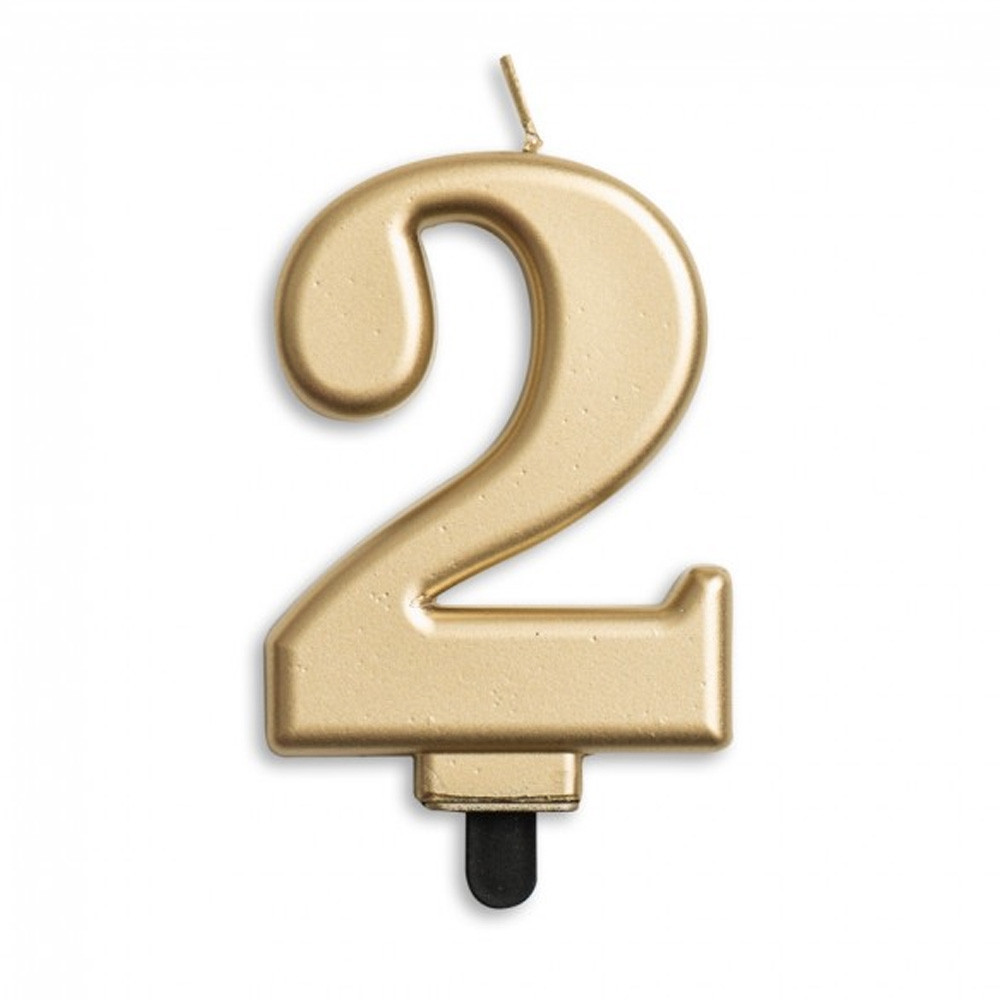 Is er iemand 2 geworden of moet er een jubileum worden gevierd? Met deze prachtige metallic gouden cijferkaars ziet iedereen dat het een feestje is! Door de prikker kan de kaars gemakkelijk in een taart of cake worden geprikt.
