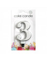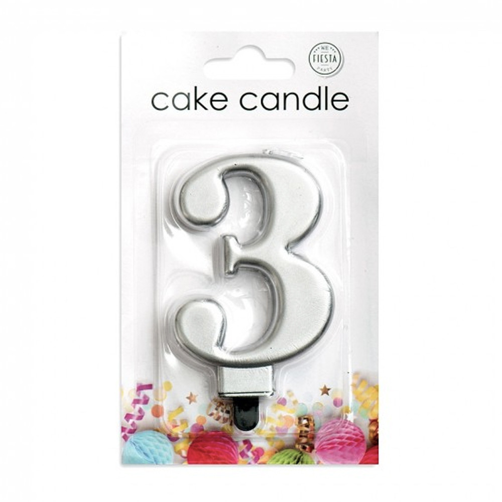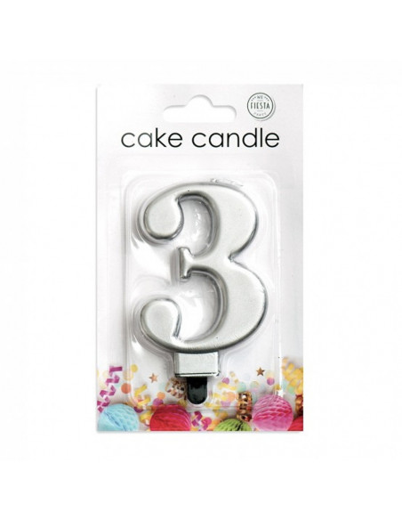 Is er iemand 3 geworden of moet er een jubileum worden gevierd? Met deze prachtige metallic zilveren cijferkaars ziet iedereen dat het een feestje is! Door de prikker kan de kaars gemakkelijk in een taart of cake worden geprikt.