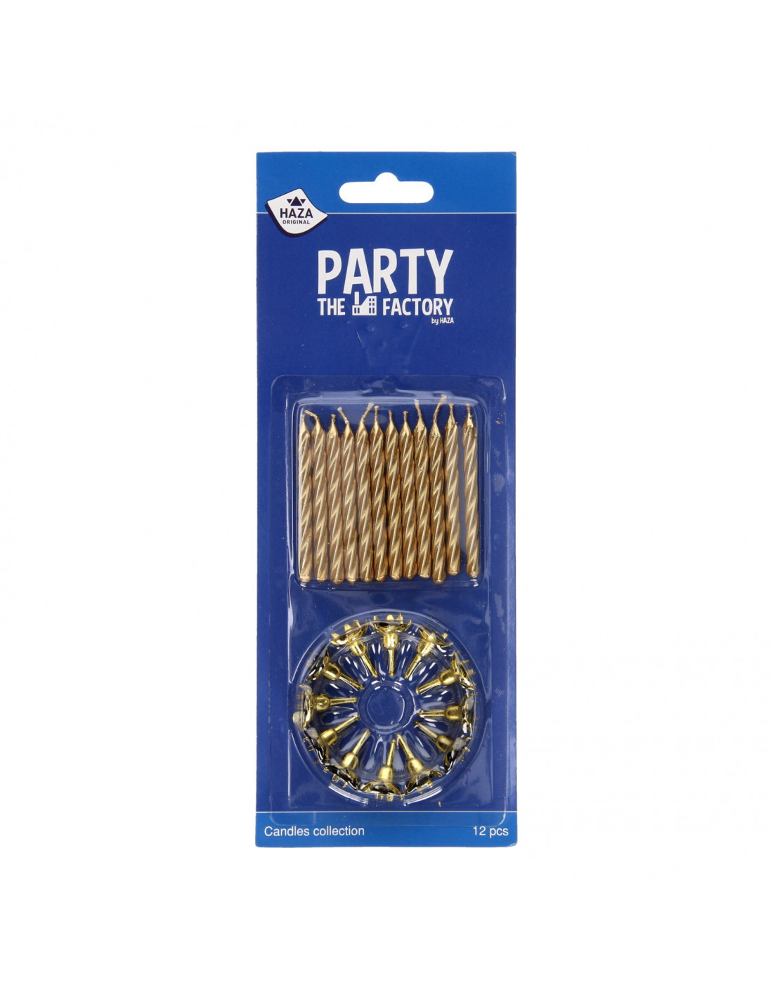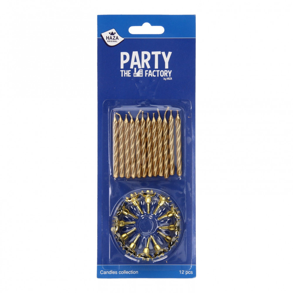 Set van 12 gouden taartkaarsen. Hiermee springt jouw taart er echt uit!