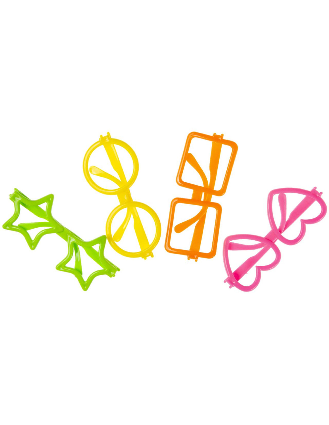 Met groen, oranje, roze en geel ben je voorzien van een bril die bij elk kostuum past. Of je nu deel uitmaakt van een groepenkostuum of gewoon verschillende outfits wilt aanvullen, deze feestbrillen maken het plaatje compleet.