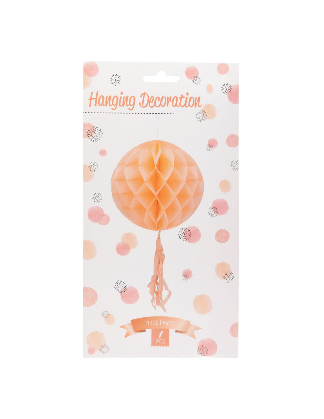 Rosegouden honingraat decoratie. De decoratie kan aan de muur, deur, raam of plafond gehangen worden. De verpakking bestaan uit een decoratie.