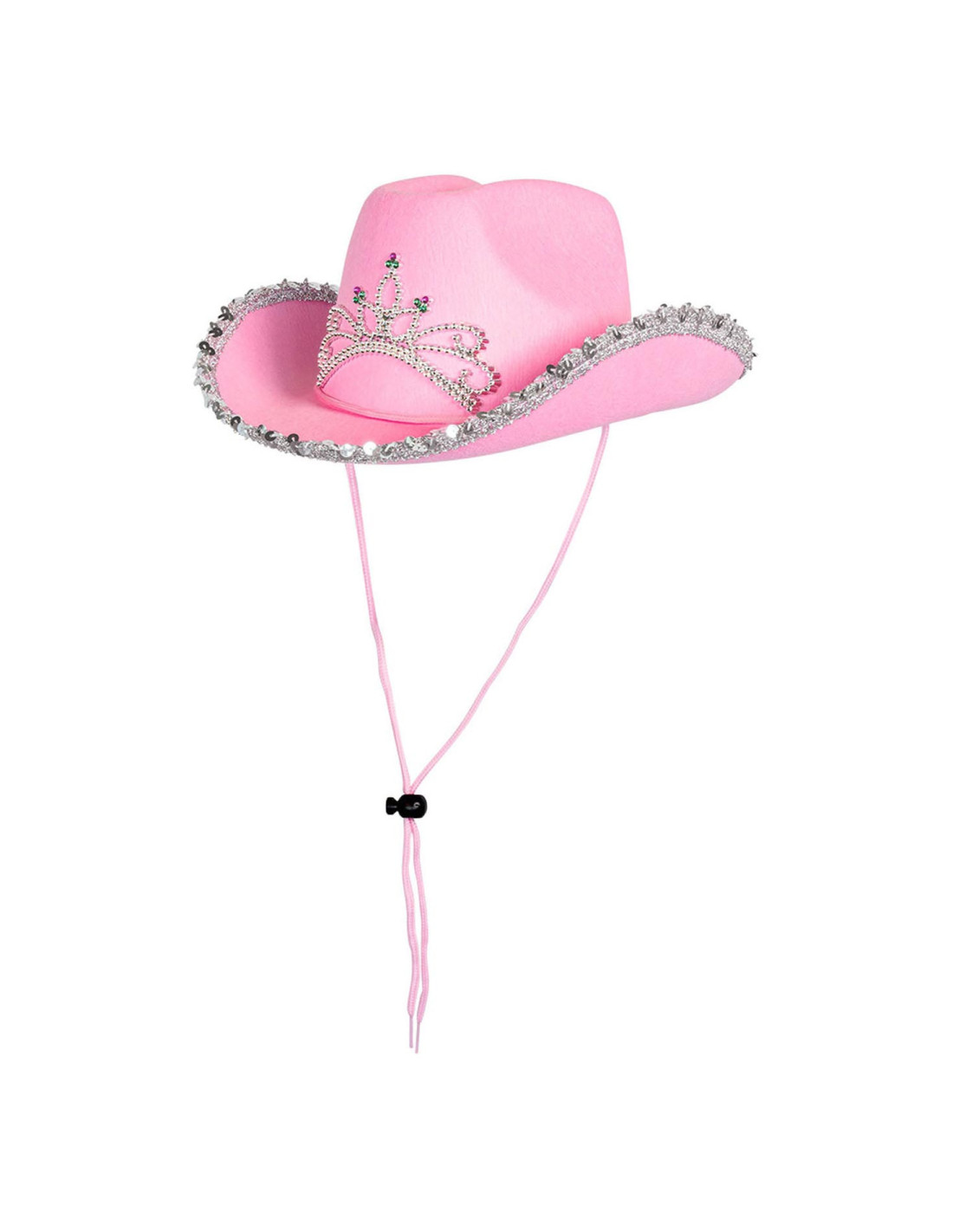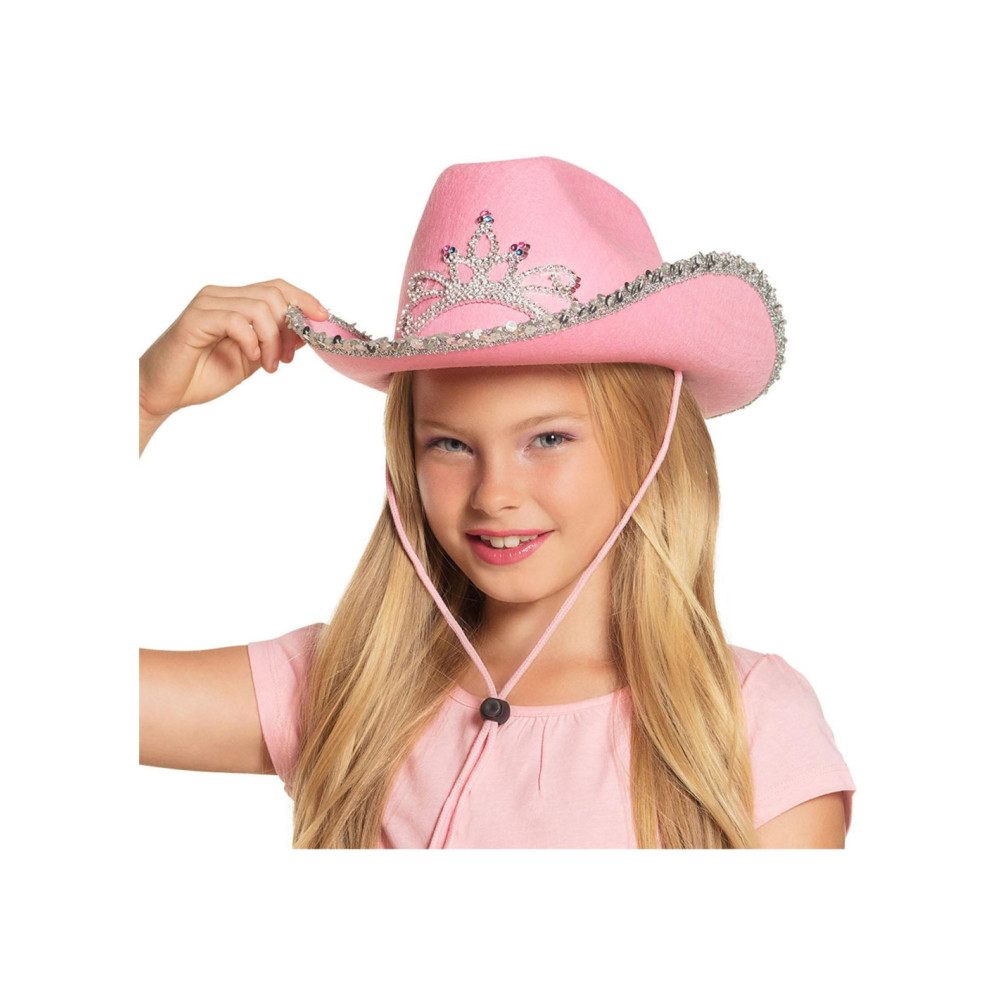 Roze kindercowboyhoed Glimmer met edelsteentjes. Maat 55, geschikt vanaf 3 jaar.