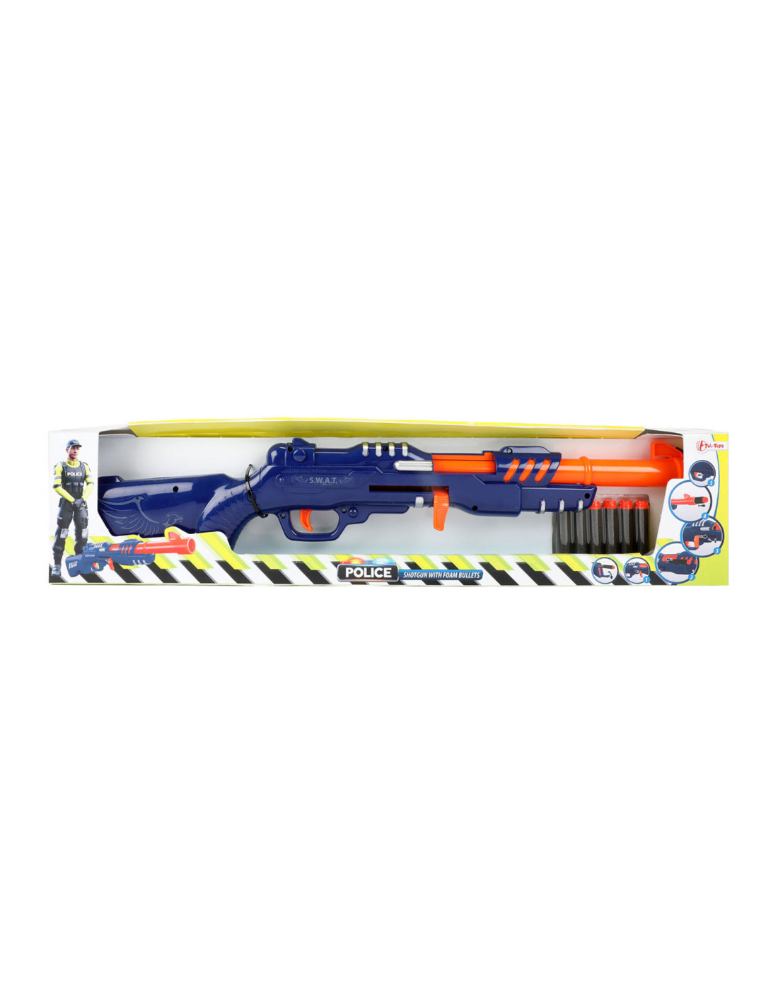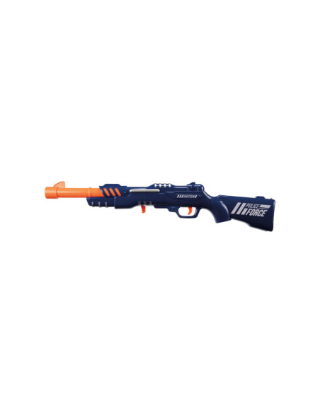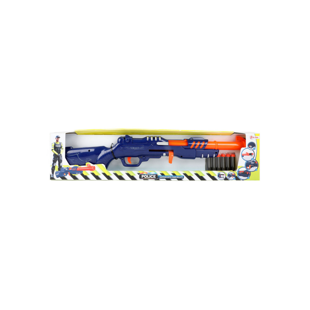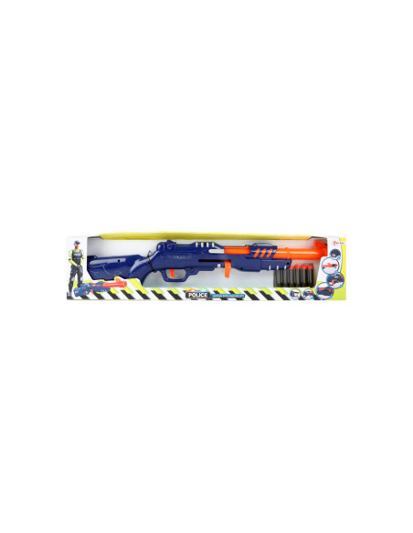 Politie speelgoedpistool met 6 foampijlen. Afmetingen: 61 x 10 centimeter. Geschikt voor kinderen van 6 jaar en ouder.