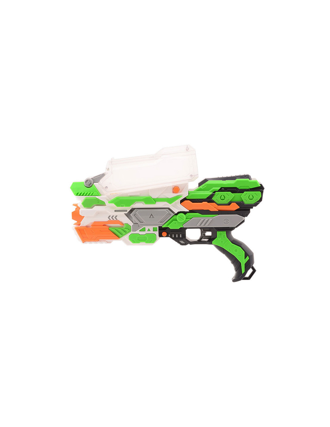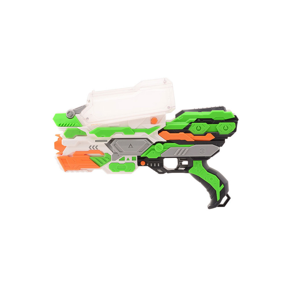 In deze gave Tack Pro Power Shot kun je wel 30 ballen kwijt om mee te schieten! Het pistool is groen, zwart en oranje gekleurd met witte en grijze accenten en 36 centimeter lang.
