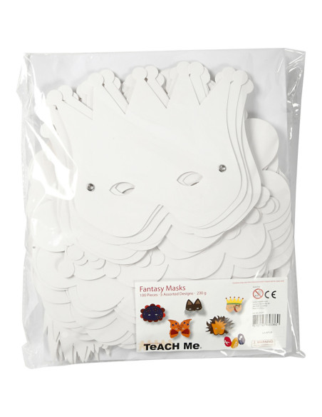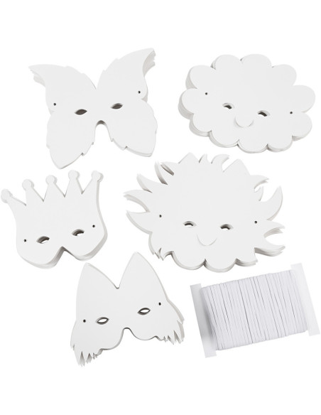 Fantasiemaskers, wit, H: 15-20 cm, 230 gr, 5x20 stuk