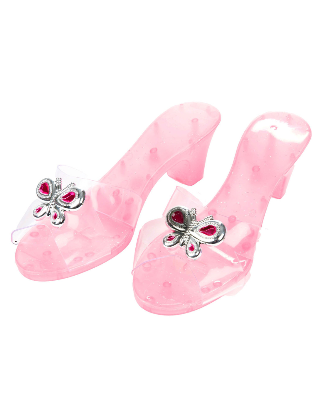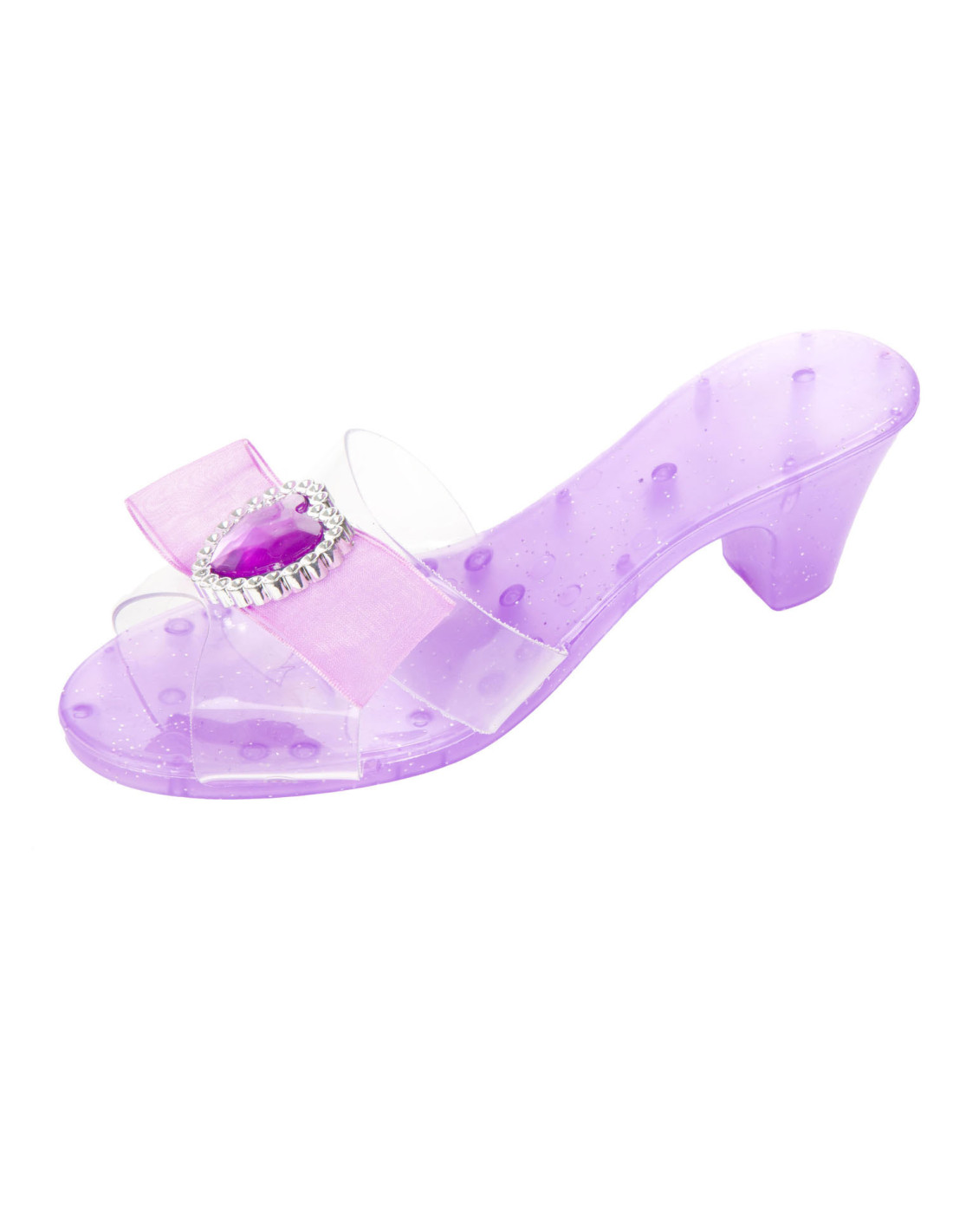 PRINCESS FRIENDS kunststof prinsessenmuiltjes in roze (met vlinder) of paars (met hart). De schoentjes hebben een klein hakje en een transparant bandje voor over de voet.