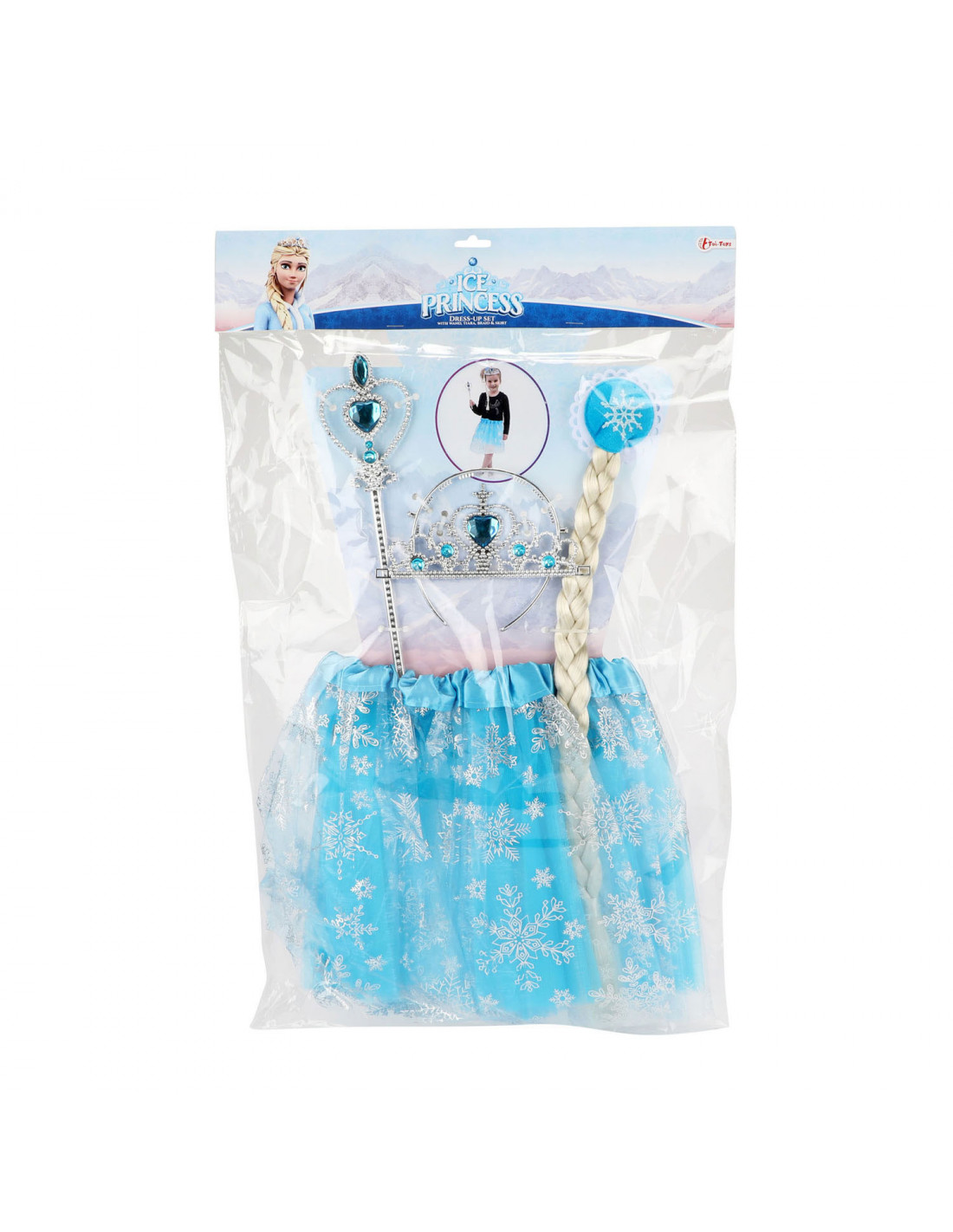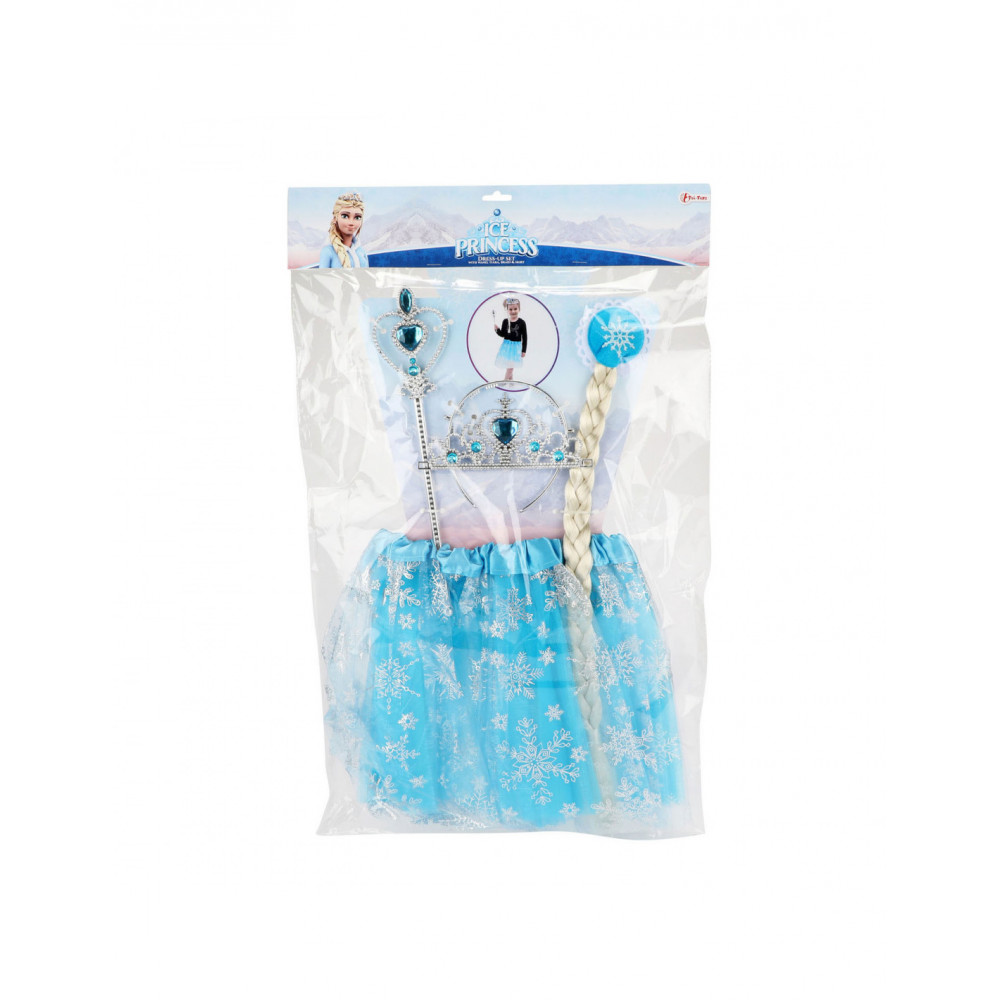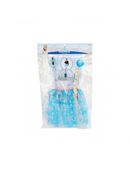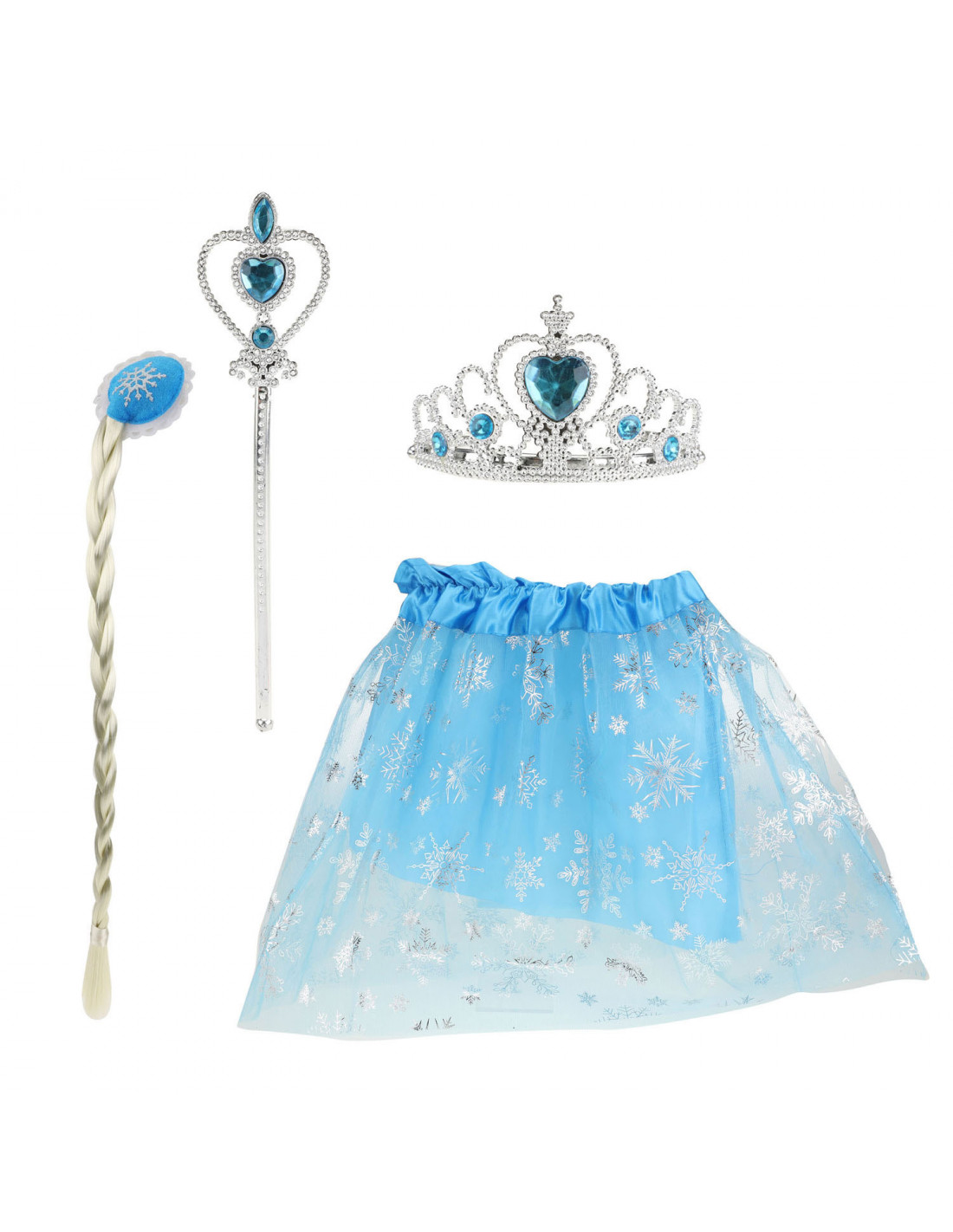 Elk kind kan een ijsprinses worden met dit prachtige kostuum! Een echte outfit in de stijl van "Anna en Elsa" uit de populaire film. De set bestaat uit een glinsterende prinsessenrok met bijpassende kroon en toverstaf met blauwe kristallen. De blonde vlecht met haarclip maakt de set compleet. Verkleden is niet alleen leuk met carnaval, maar ook op elk kinderverjaardagsfeestje! Dus verander snel in die ijsprinses!