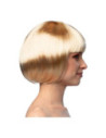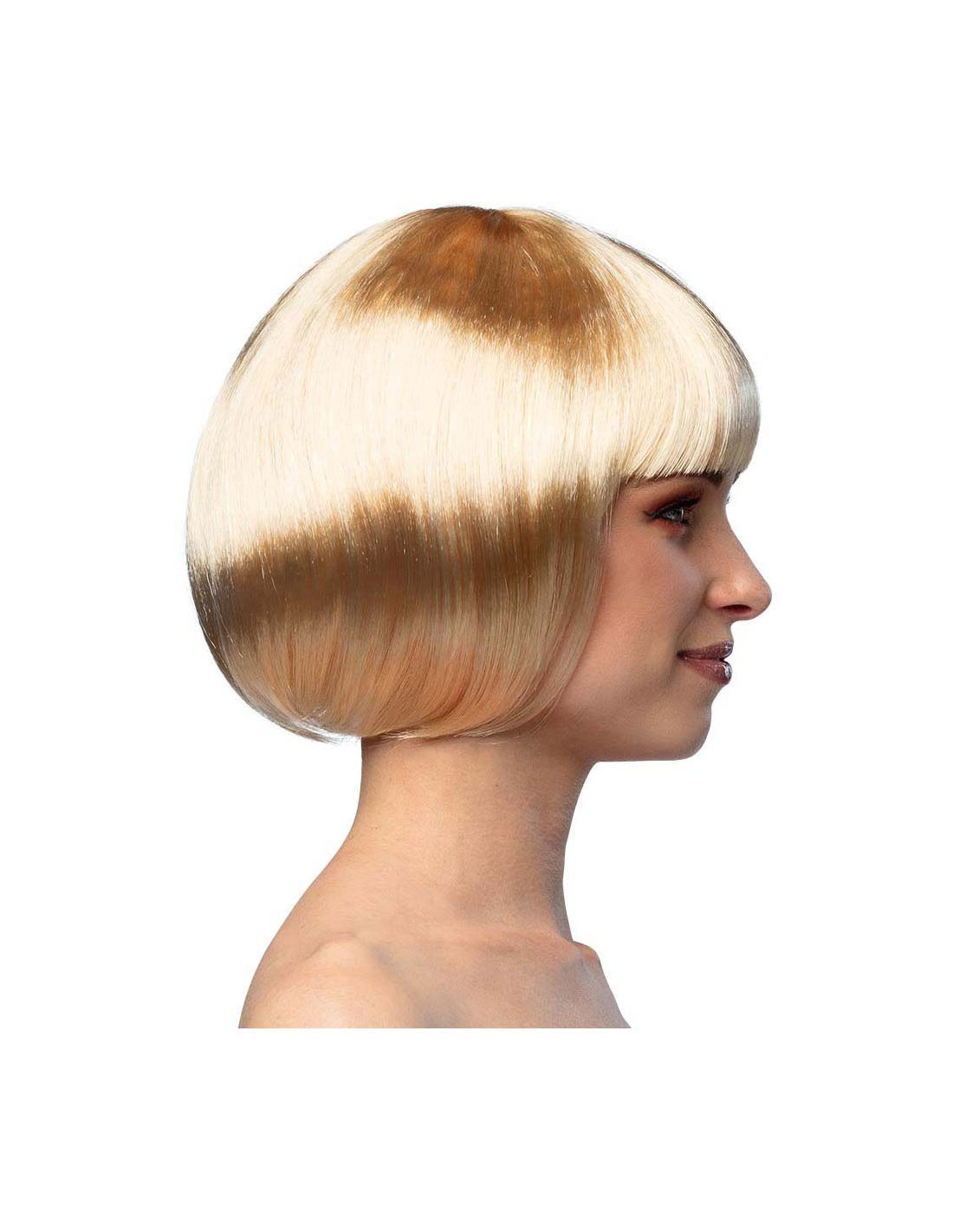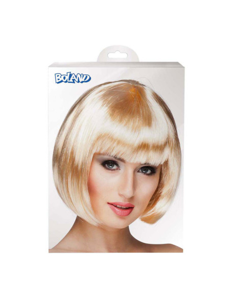 Steile, korte boblijn pruik in blonde kleur, geschikt voor volwassenen. Perfect voor cabaret- of burlesque-themafeesten. Gemaakt van synthetisch materiaal voor een realistische uitstraling.