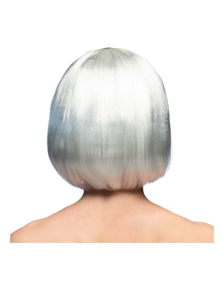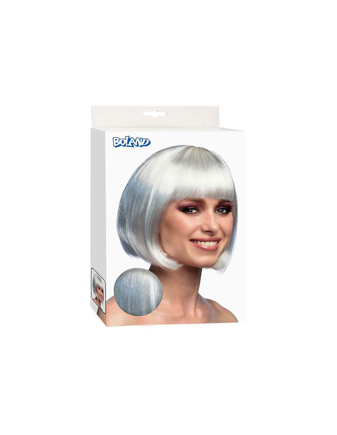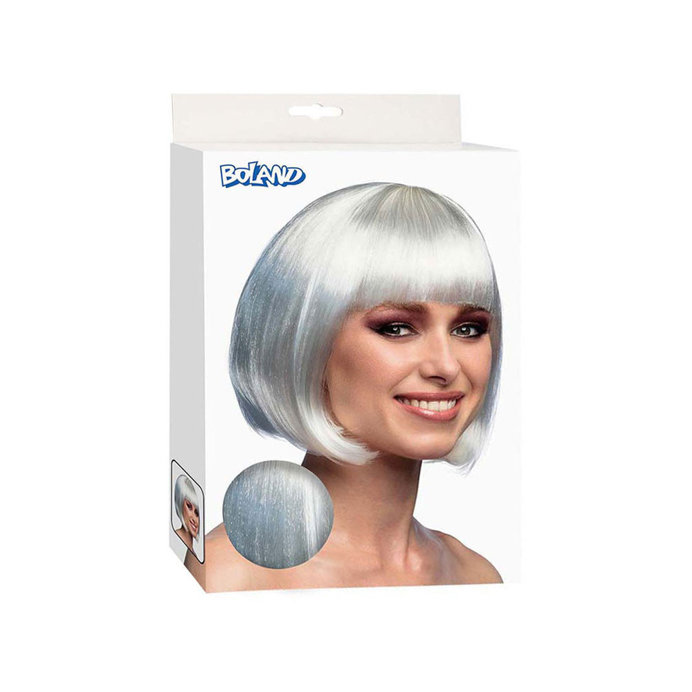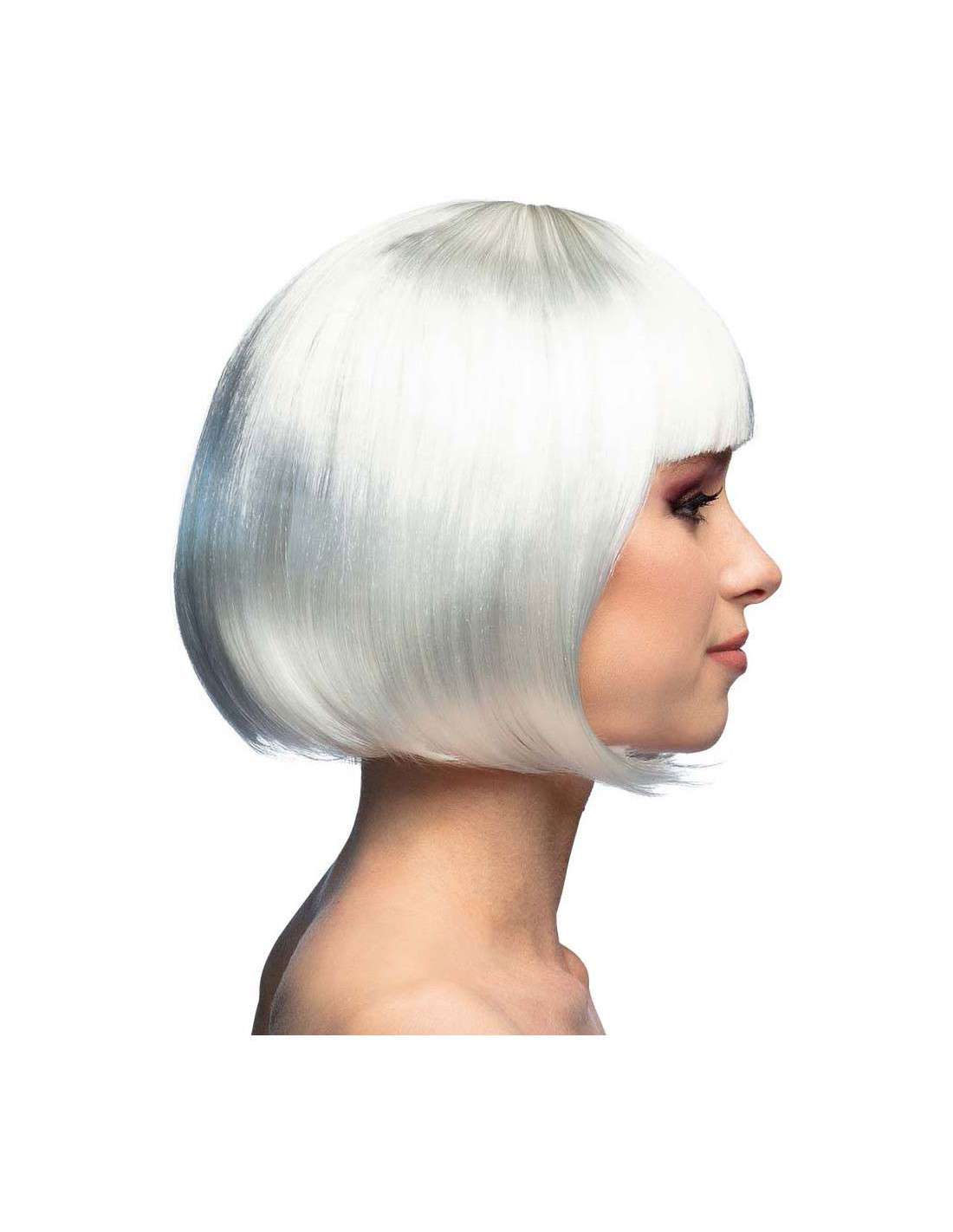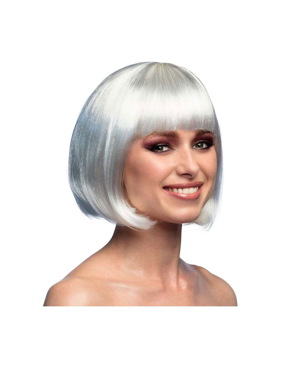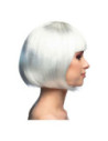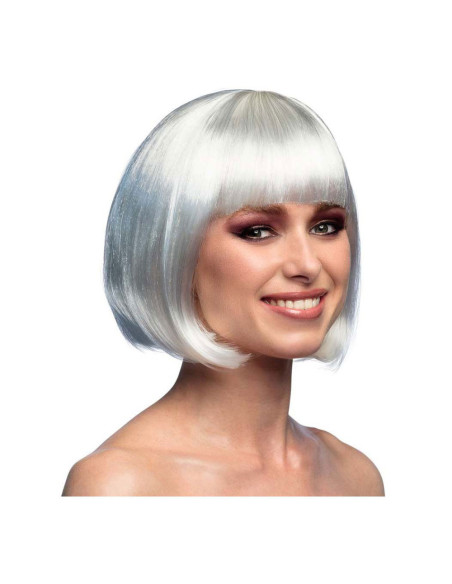 Steile, korte boblijn pruik in witte kleur, geschikt voor volwassenen. Perfect voor cabaret- of burlesque-themafeesten. Gemaakt van synthetisch materiaal voor een realistische uitstraling.