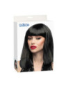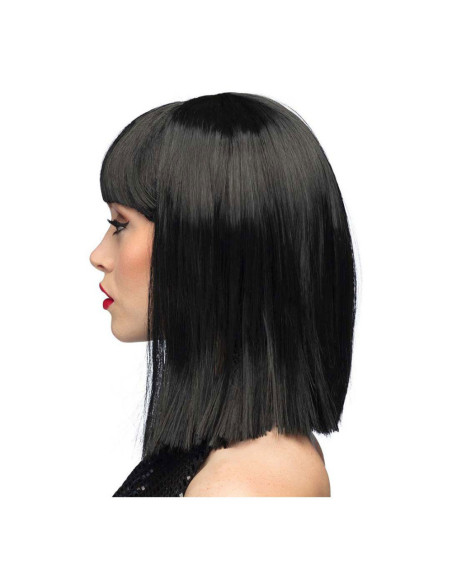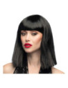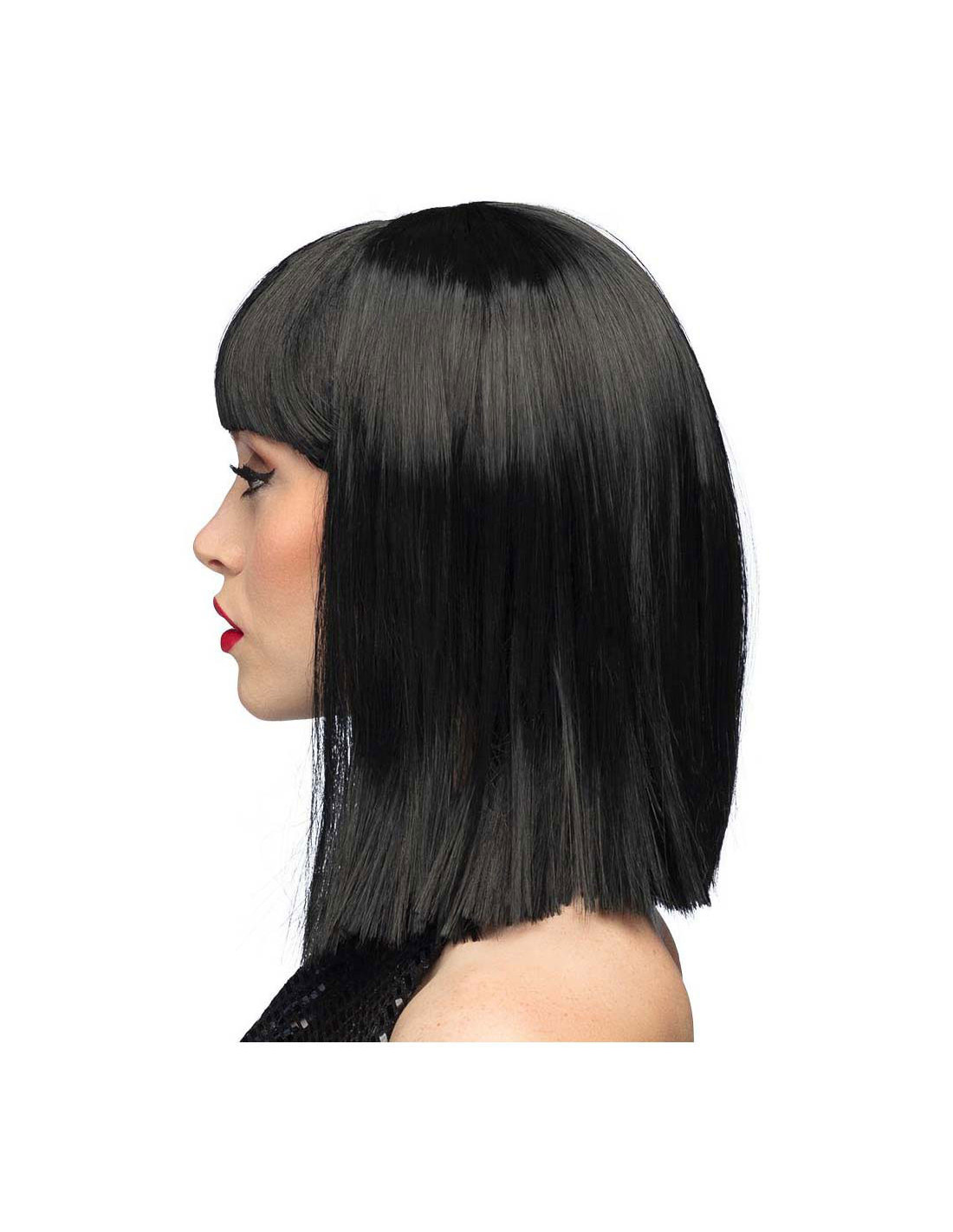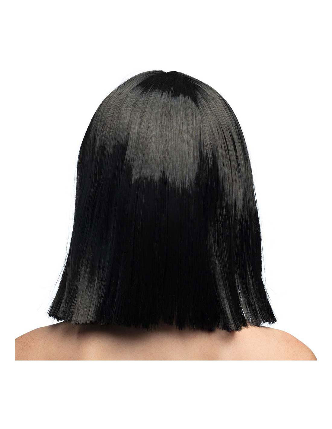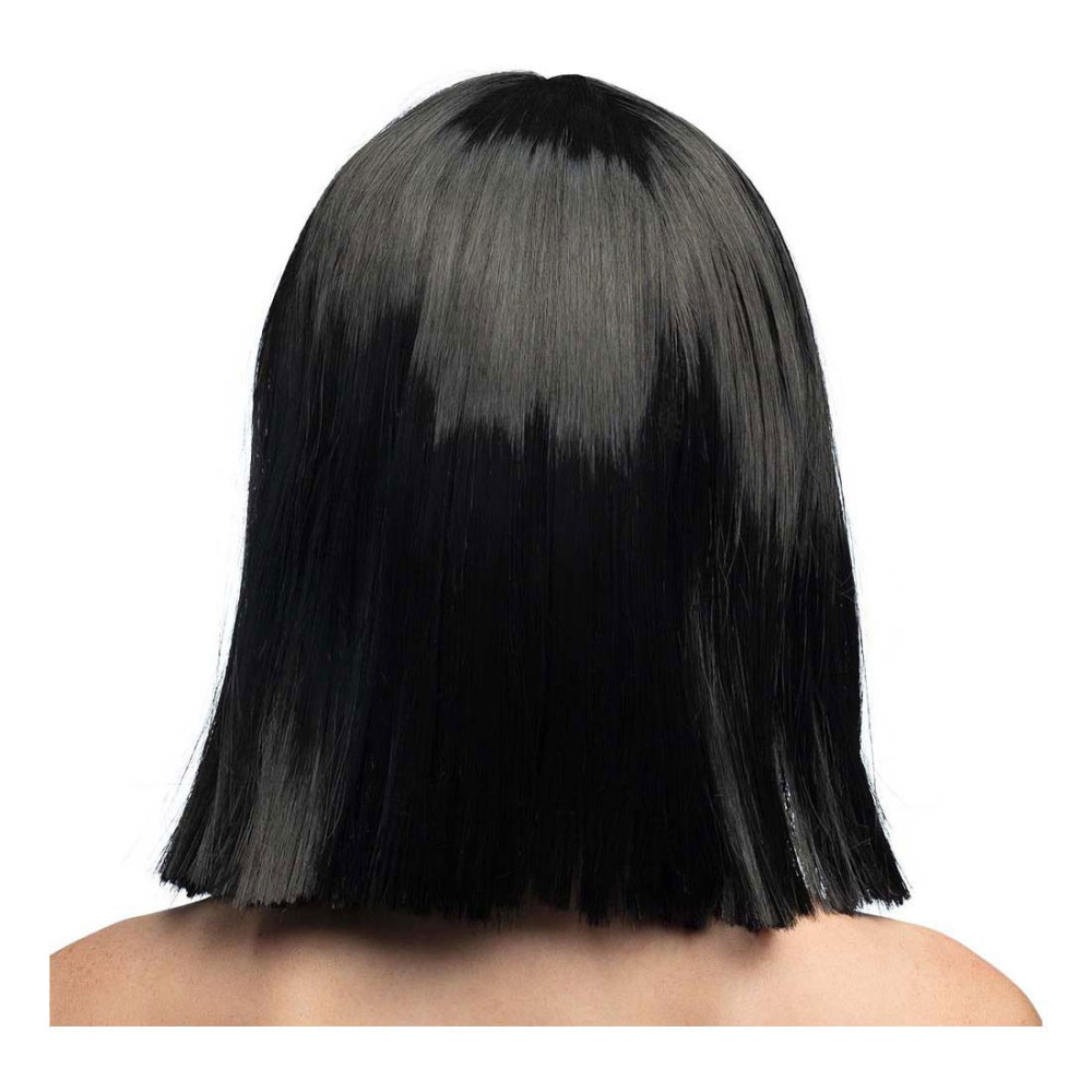 Halflange, blonde damespruik met steil haar en rechte pony, gemaakt van synthetisch materiaal. Geschikt voor volwassenen met een hoofdomtrek van circa 59 cm. Niet wasbaar en niet geschikt voor kinderen onder de 14 jaar.