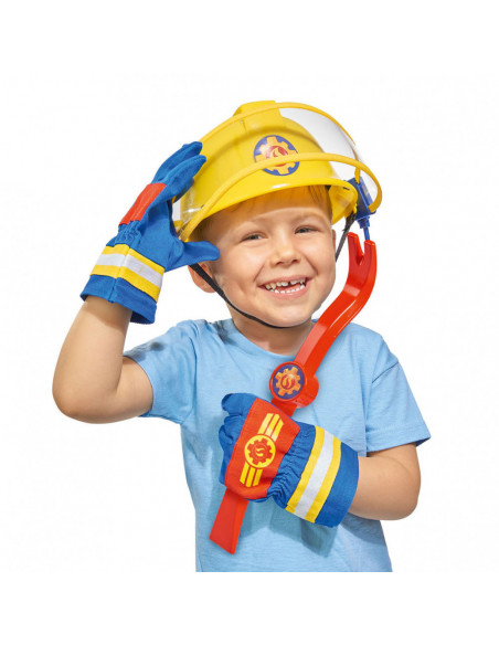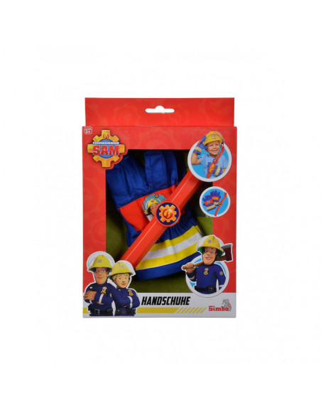 Brandweerman Sam handschoenen en kunststof breekijzer. Afmetingen: handschoenen: 20 x 14 cm, lengte breekijzer 28cm.