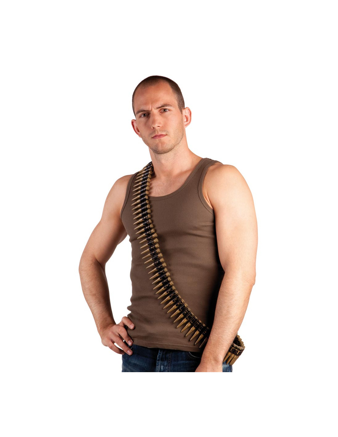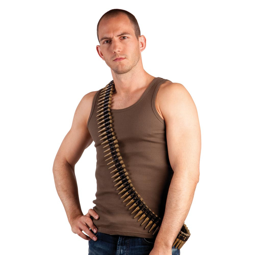 Stoere patronengordel met allemaal kogels op een rij.
