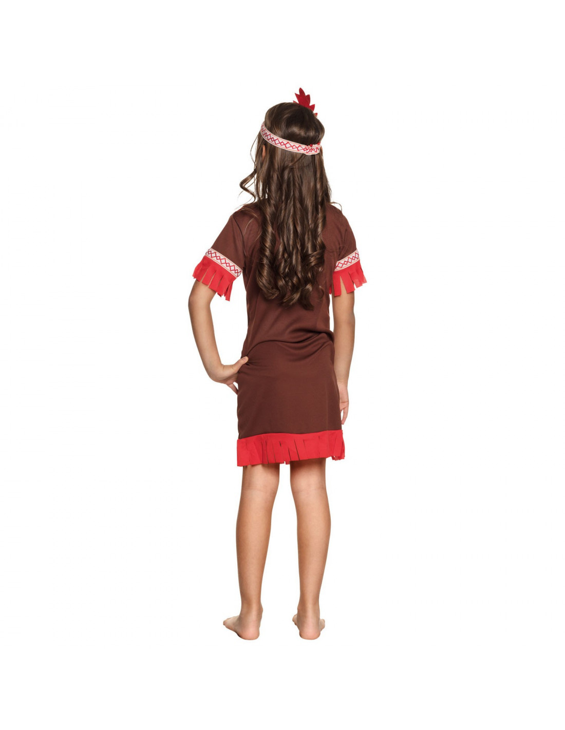 Met dit kinderkostuum wordt jij een prachtig indianenmeisje! Het jurkje is gemaakt van 100% polyester en is brandvertragend. Inclusief hoofdband. Geschikt voor kinderen van 4 t/m 6 jaar.