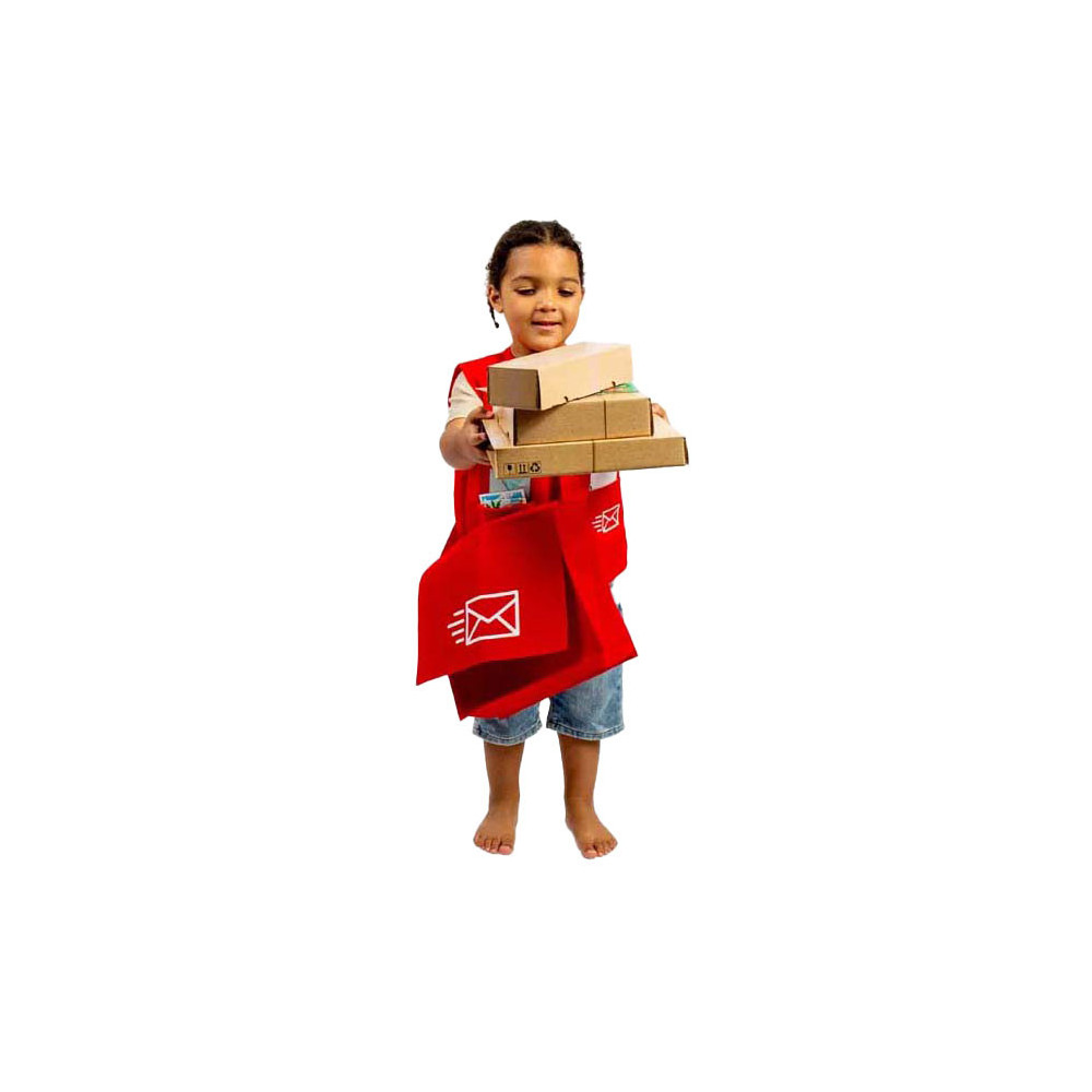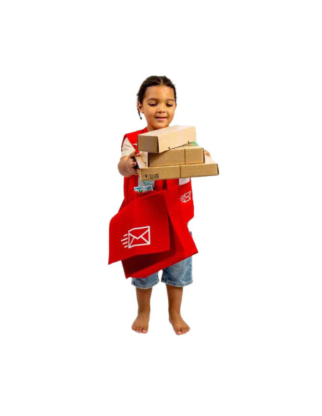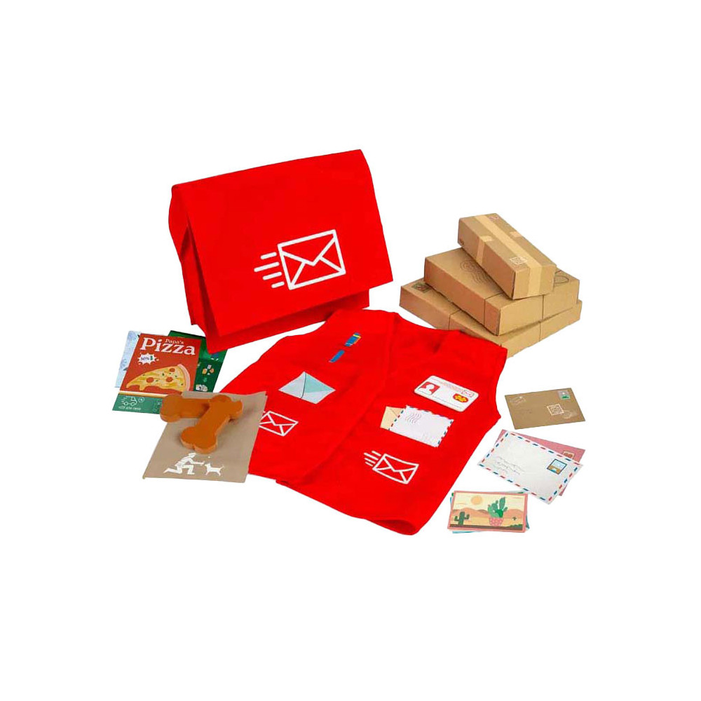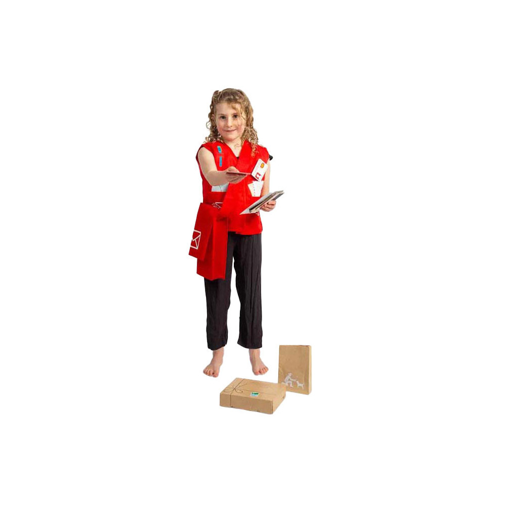 Deze leuke set is perfect voor jonge postbodes in spe! In deze verkleedset zit een rode postas, een vest, naambadge, pakketjes, brieven, ansichtkaarten, afhaalmenu's en zelfs hondensnoepjes voor alle lieve viervoeters die je tegenkomt!