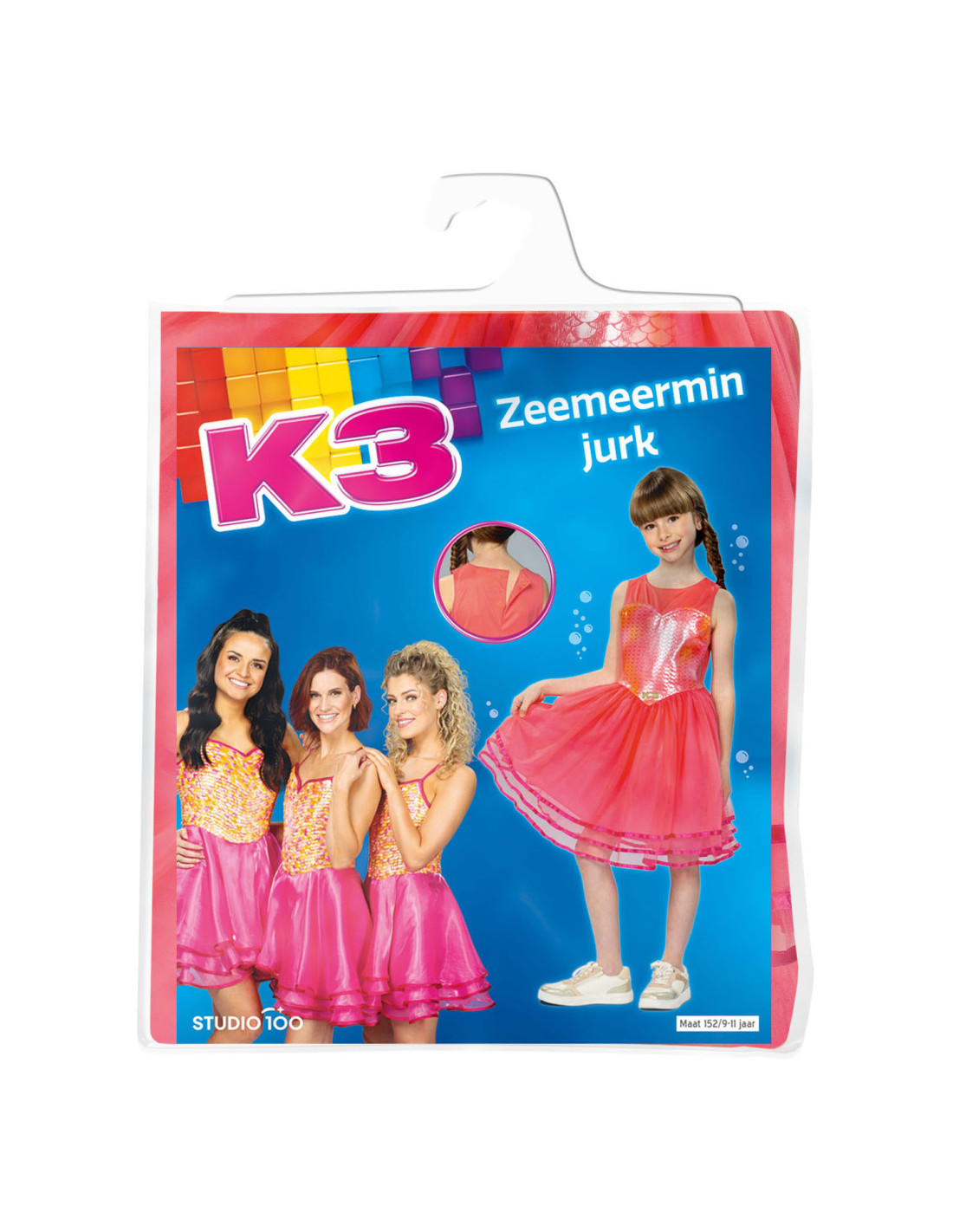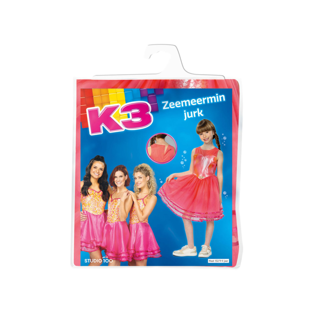 Steel de show in dit K3 zeemeerminjurkje! In prachtige kleuren en met een zwierig rokje! Geschikt voor kinderen van 9 tot 11 jaar.