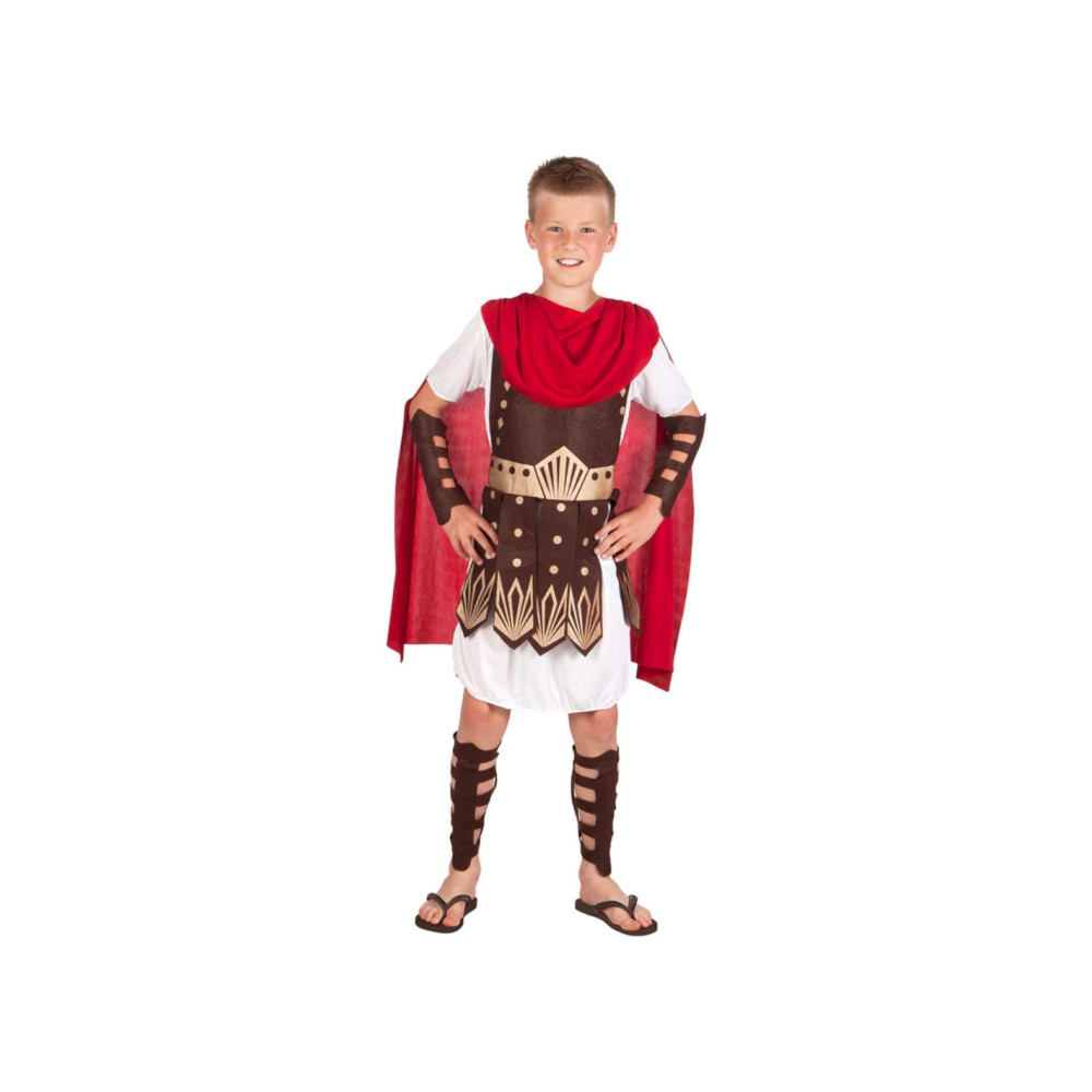 Ga de strijd aan in de arena! Dit stoere gladiatorkostuum voor kinderen bestaat uit een cape, tuniek, been- en armkappen. Combineer het kostuum een speelgoedzwaard en trek ten strijde. Geschikt voor kinderen van ca. 4 tot 6 jaar oud. Dit kostuum is brandvertragend en met de hand te wassen.