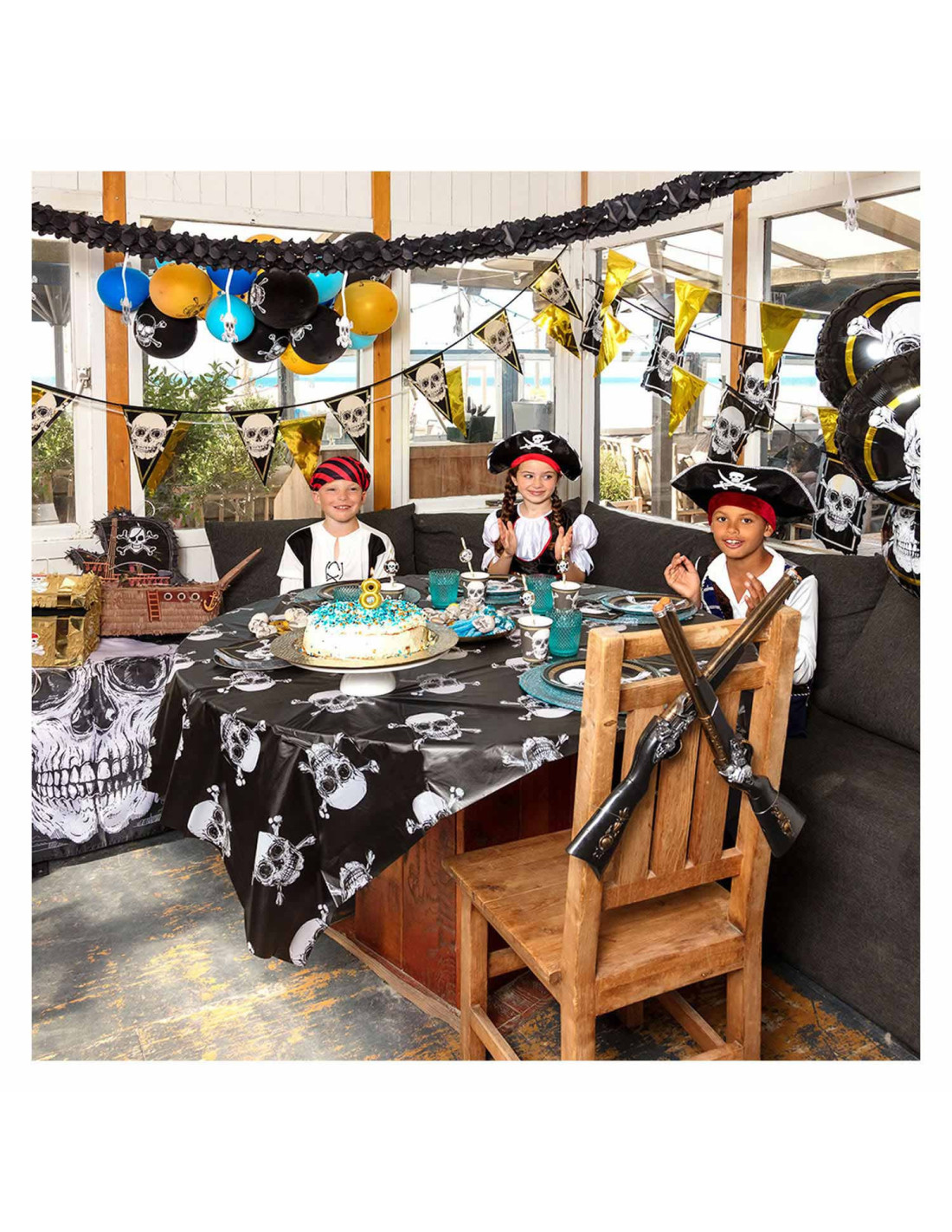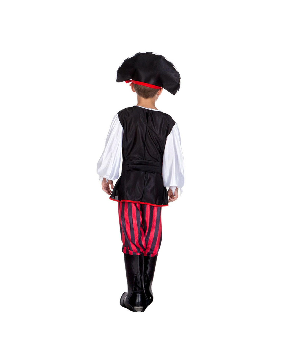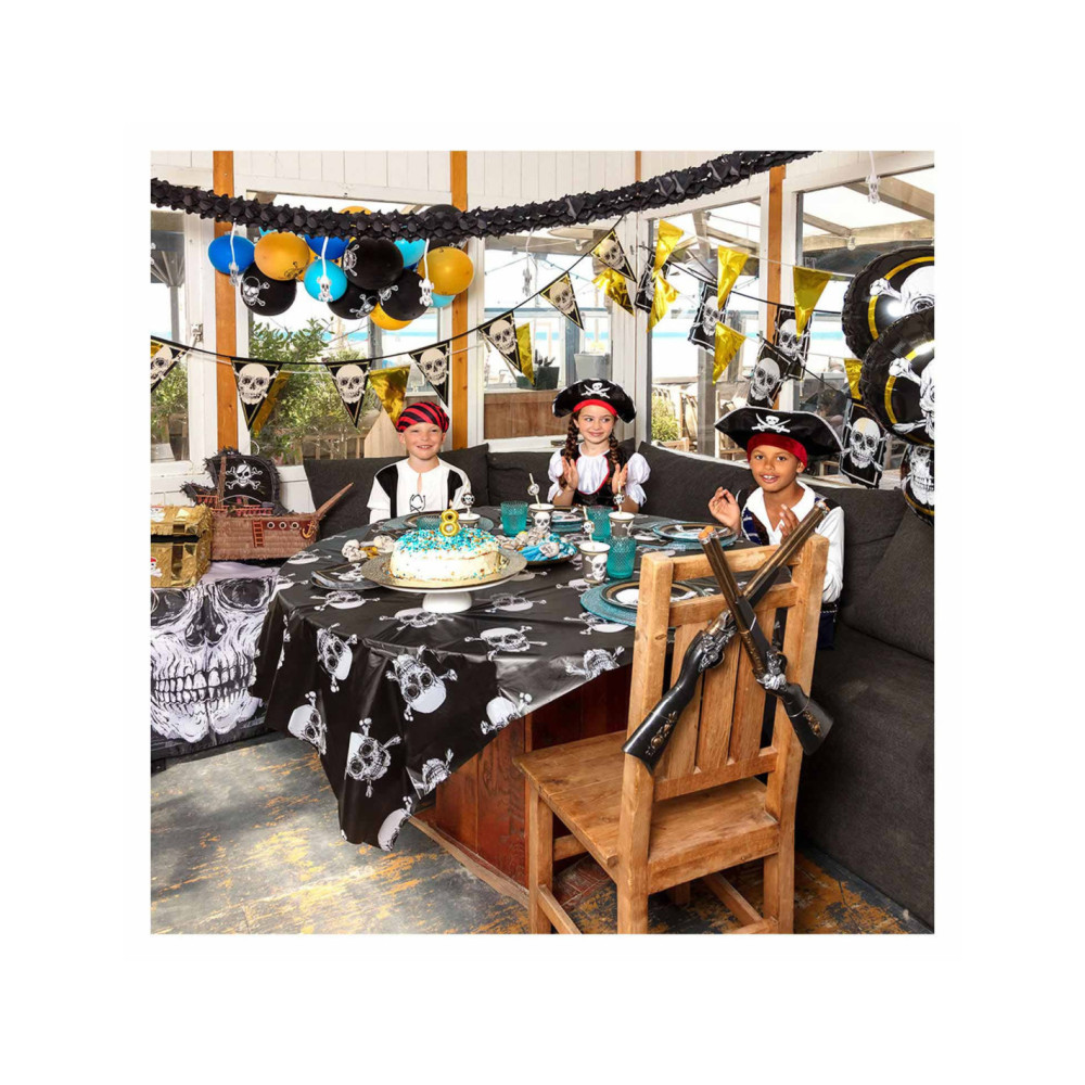 Arrr, klim aan boord van je piratenschip en verover de zeven zeeën! Dit piratenkostuum voor kinderen bestaat uit een shirt met riem, een piratenhoed, een broek en overlaarzen. Het kostuum is geschikt voor kinderen van 7 tot 9 jaar oud en is handwasbaar. Het kostuum is eenvoudig te openen en sluiten met klittenband.