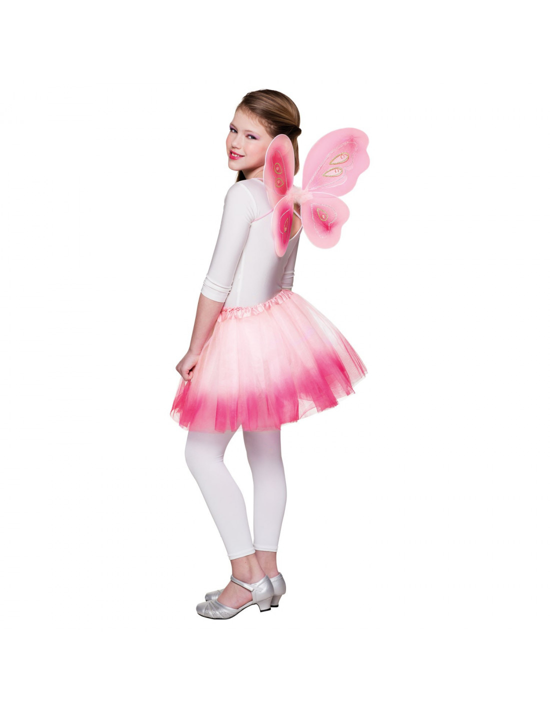 Word een echte fee met deze roze verkleedset. Trek het rokje met roze tule aan, bevestig de vleugels met glitters op je rug en het avontuur kan beginnen! Zowel het rokje als de vleugels zijn te hebben een elastieken band, zodat je er extra lang plezier van hebt!