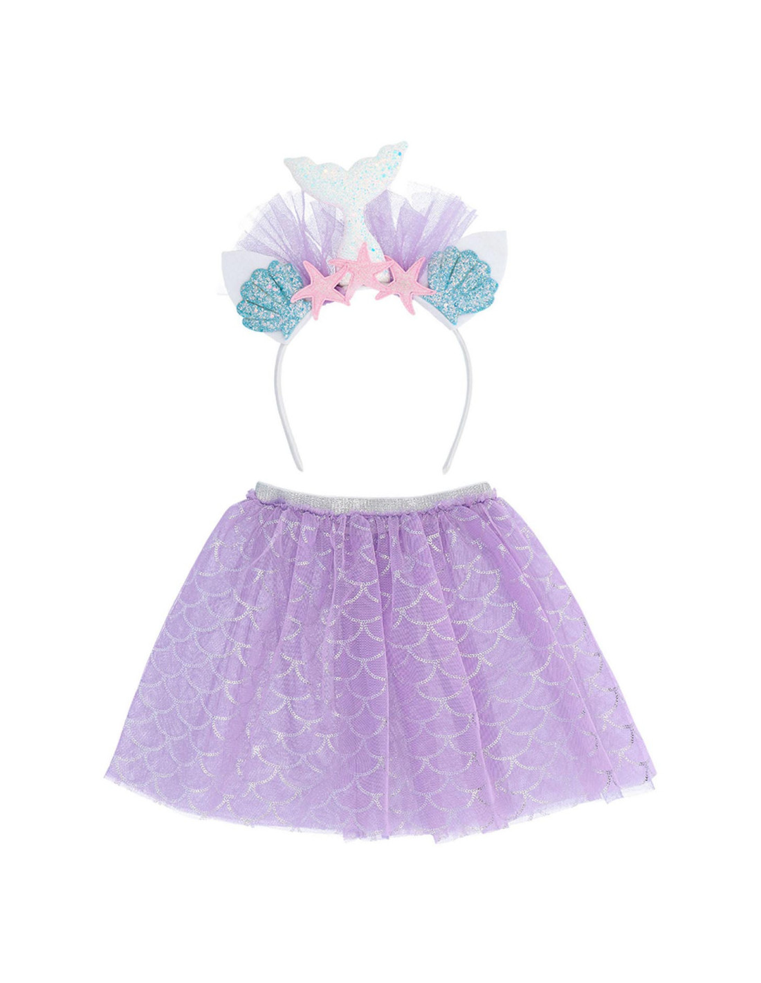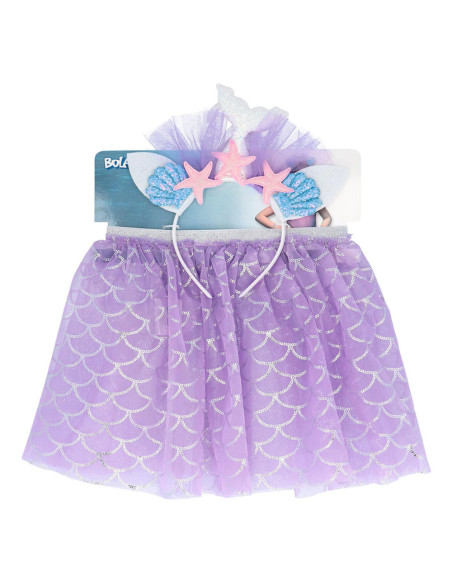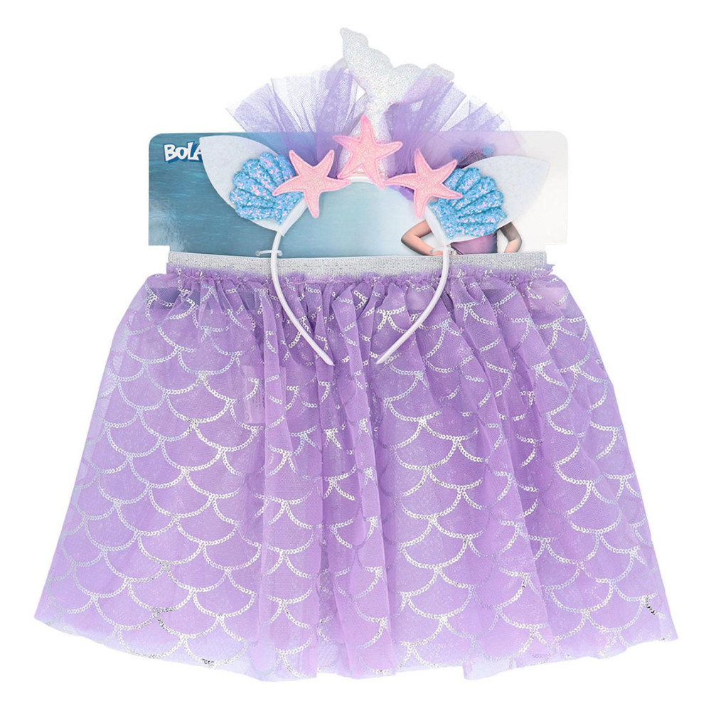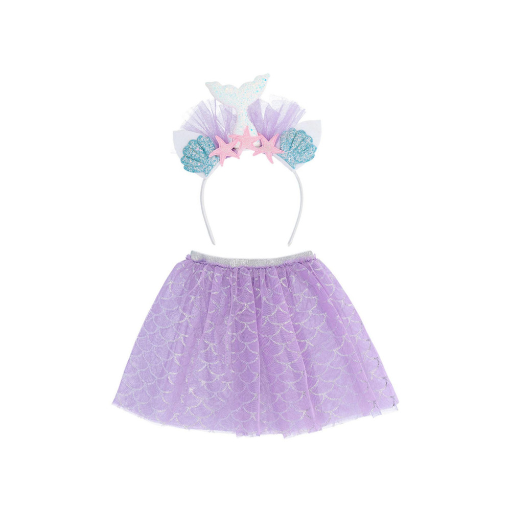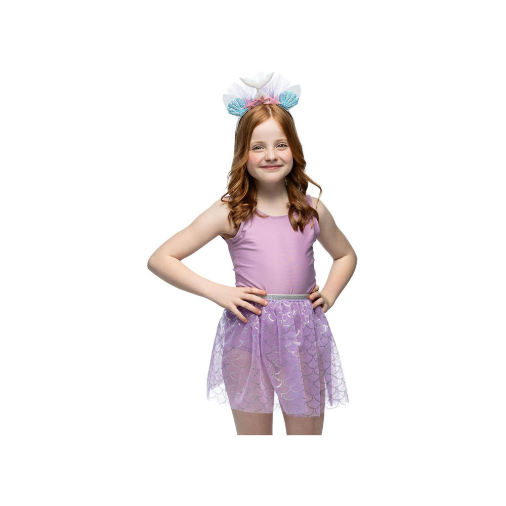 Zeemeermin verkleedset met tiara en tutu. Duik de wereld der verbeelding in! Materiaal: 80% polyester, 18% polystyrene, 2% pet
