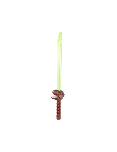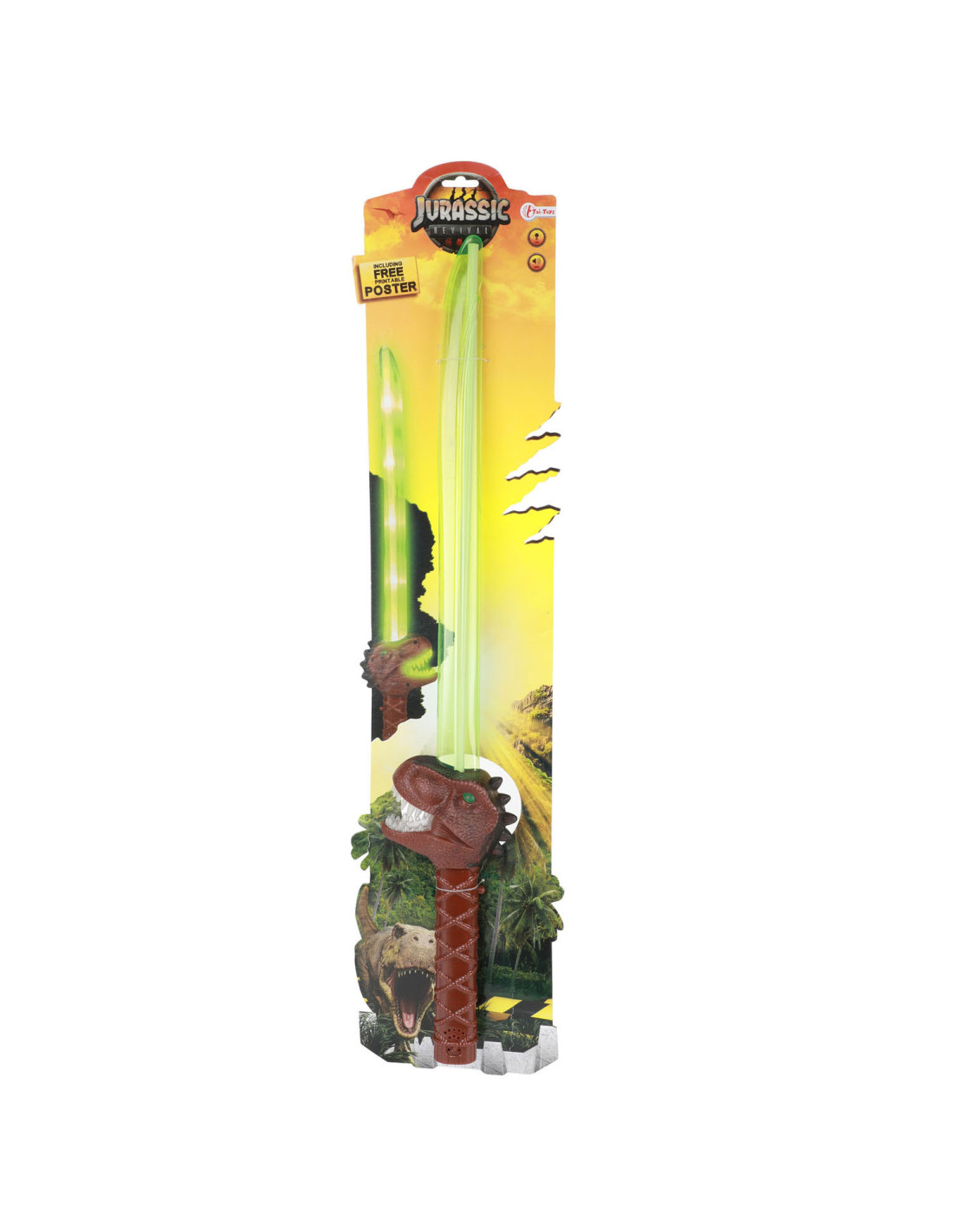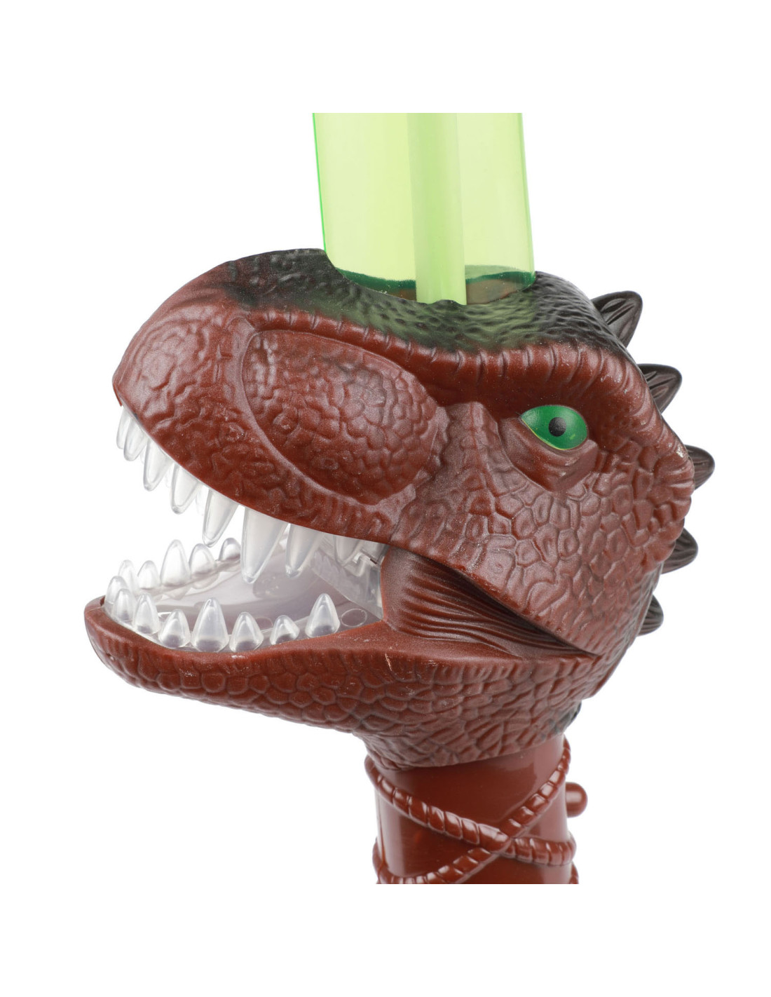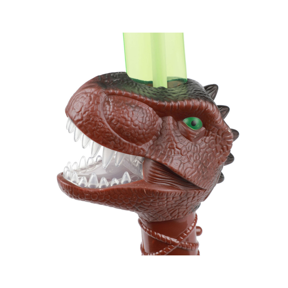 Dit dinosauruszwaard ziet er heel gevaarlijk uit en zo klinkt hij ook. Als je op de knop drukt klinkt er gebrul uit de bek van de T-rex, geven zijn tanden licht maar ook het zwaard zelf. Zeker weten dat je hiermee elke vijand verslaat.