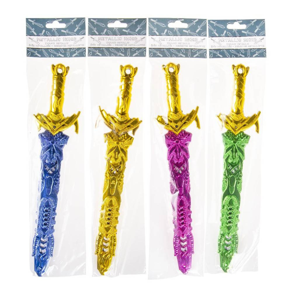 Met een lengte van 33 cm ligt het zwaard comfortabel in de hand, zodat je moeiteloos kunt vechten als een echte ridder. Het zwaard is verkrijgbaar in 4 verschillende metallic kleuren, zoals goud, zilver, blauw en rood, die willekeurig worden geleverd. Dit zorgt ervoor dat je altijd een verrassing hebt bij het ontvangen van jouw zwaard.