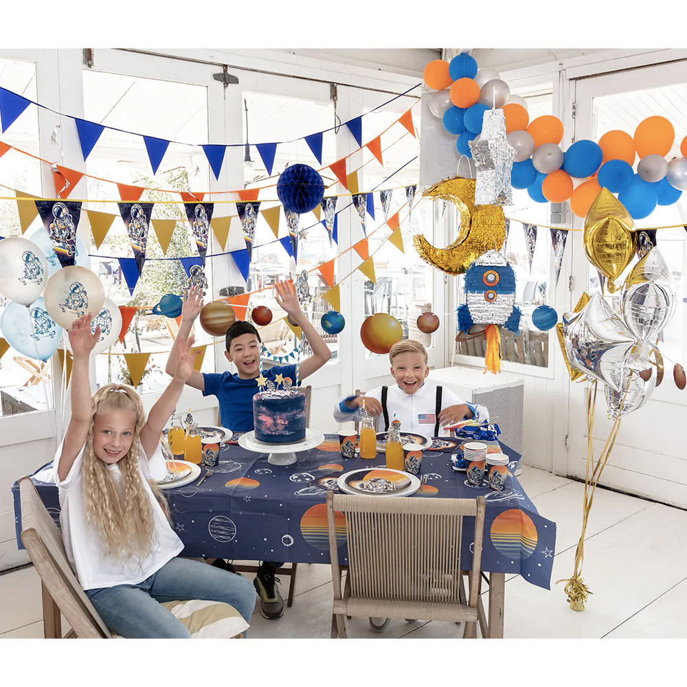 Bestel vandaag nog onze vlaggenlijn en geef je feestlocatie een kosmische make-over met een vleugje glitter en glans. Voeg deze vlaggenlijn toe aan je feestdecoratie en zie hoe de ruimte tot leven komt voor de ogen van je gasten. Maak van elk feest een betoverende reis door de sterren!