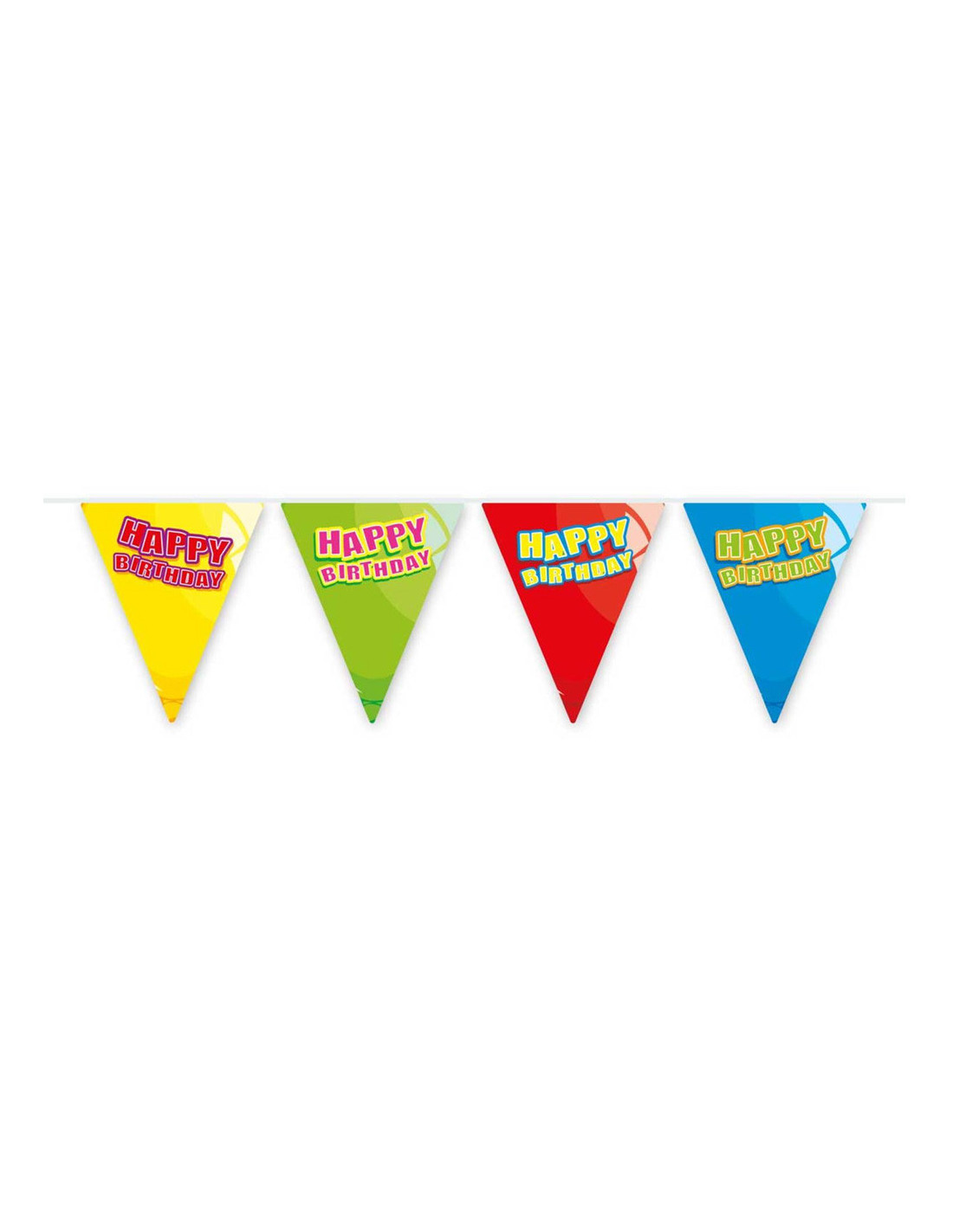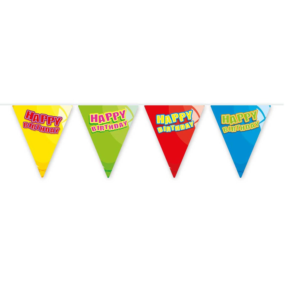 Maak van jouw feestje een kleurrijk spektakel met deze opvallende en kleurrijke feestslinger! Met vlaggetjes bedrukt met de tekst "Happy Birthday" brengt deze slinger direct een feestelijke sfeer in de ruimte. Met een lengte van 3 meter kun je gemakkelijk de feestvreugde verspreiden en de locatie transformeren in een feestelijk paradijs.