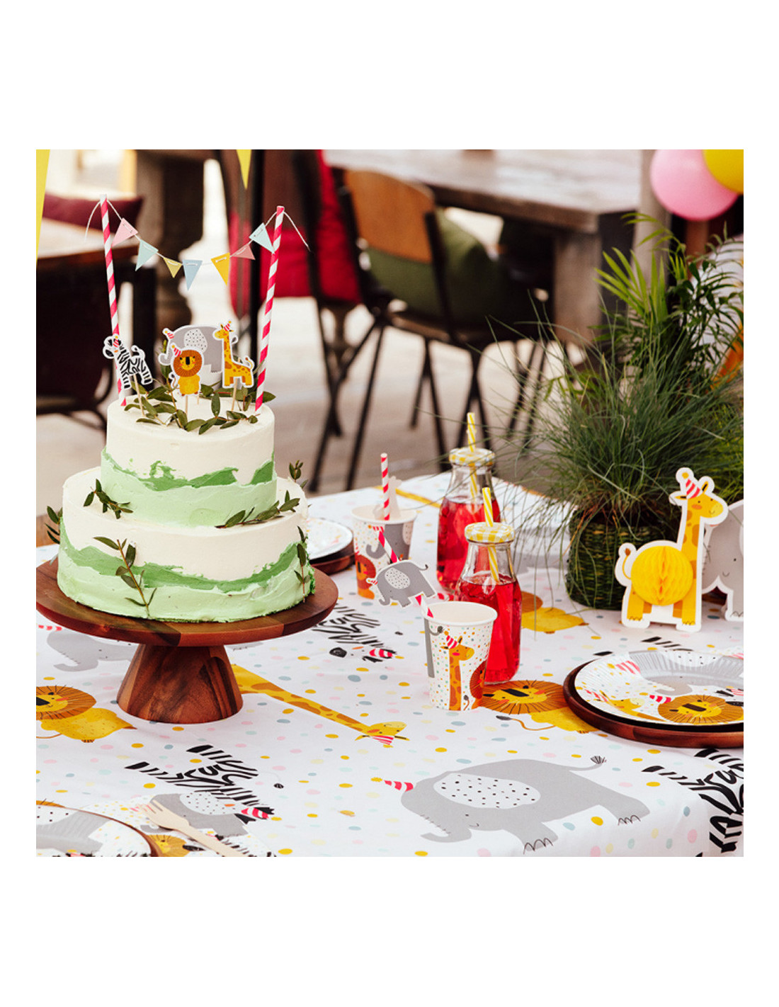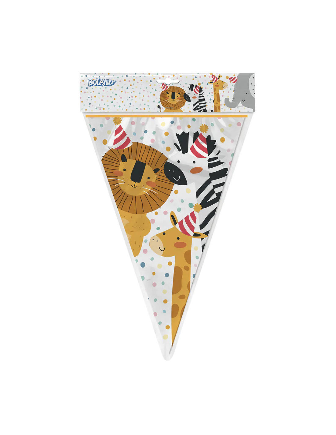 Maak van jouw feestje een echte safari avontuur met deze kleurrijke vlaggenlijn! De vlaggenlijn is voorzien van verschillende wilde dieren zoals zebra's, giraffen en olifanten en heeft een lengte van 6 meter. Perfect voor een kinderfeestje, babyshower of ander evenement met een safari-thema.