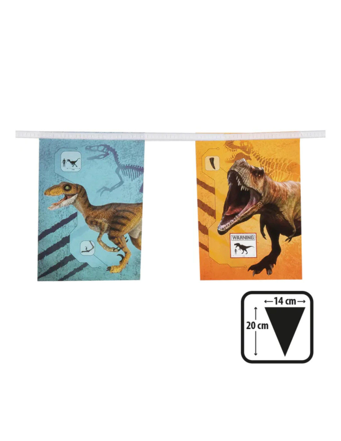 Op zoek naar een geweldige manier om jouw feest of evenement op te fleuren? Maak kennis met onze fantastische Vlaggenlijn T-Rex! Met een indrukwekkende lengte van 3 meter en vlaggen die elk 14x20cm meten, zal deze vlaggenlijn een echte blikvanger zijn op elk feest.