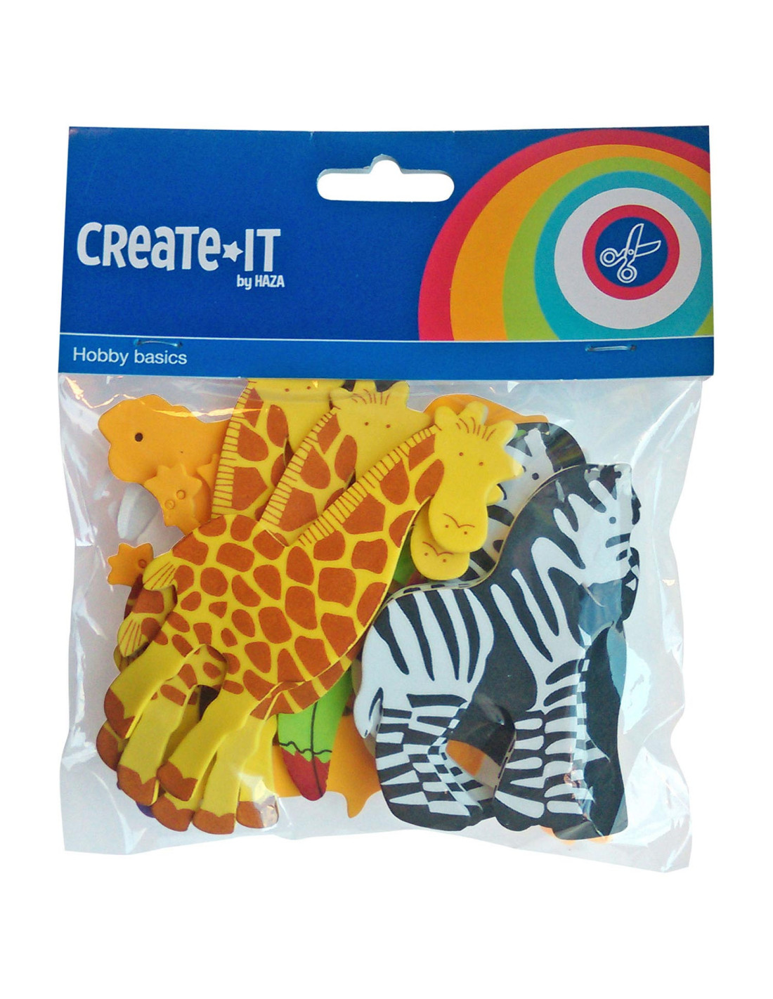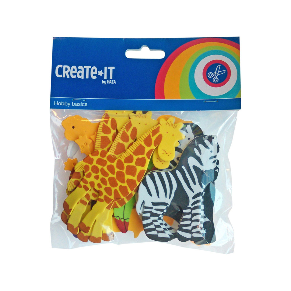 Zelfklevende dieren foamstickers. In de verpakking zitten foamstickers van giraffen, zebra's, olifanten, leeuwen, neushoorns en toekans. Verpakt per 32 stuks.