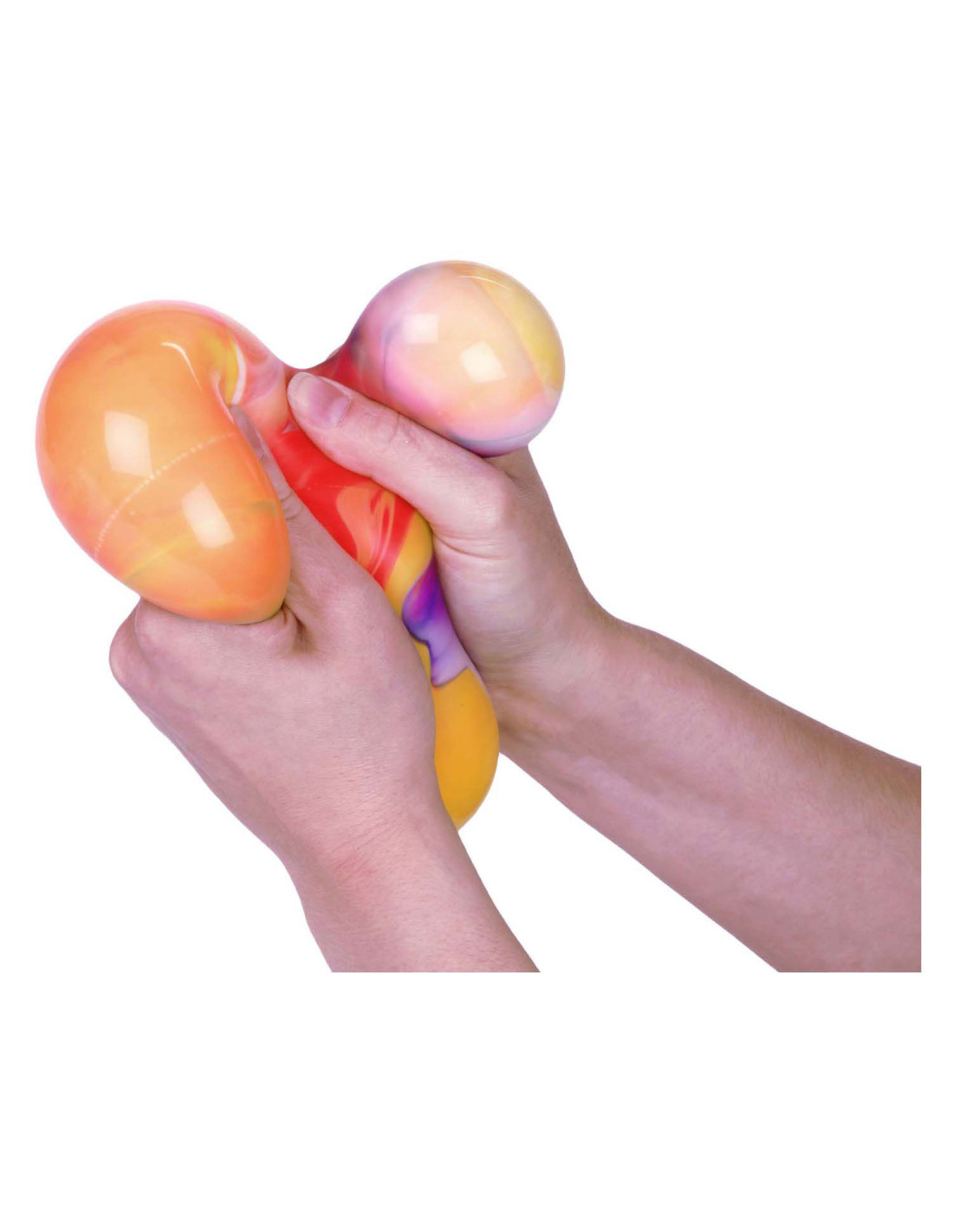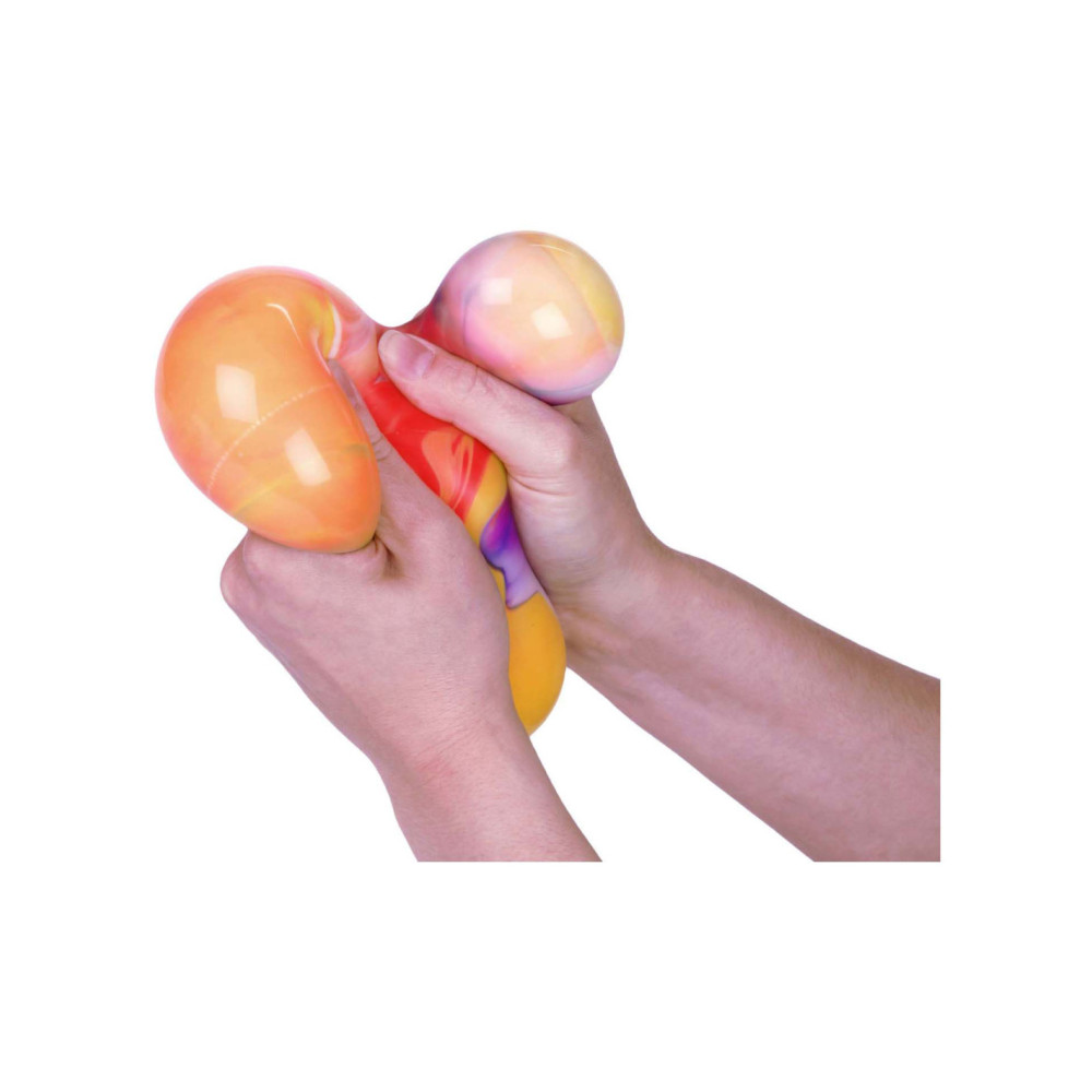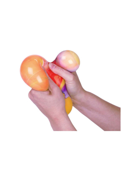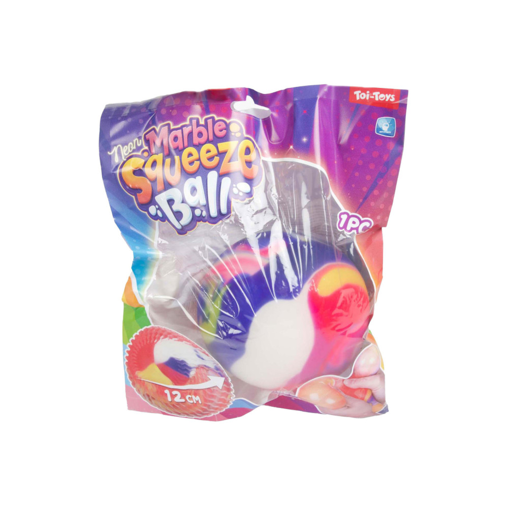 Knijpbal in neonkleuren met marmerpatroon. Afmetingen: 12 cm.