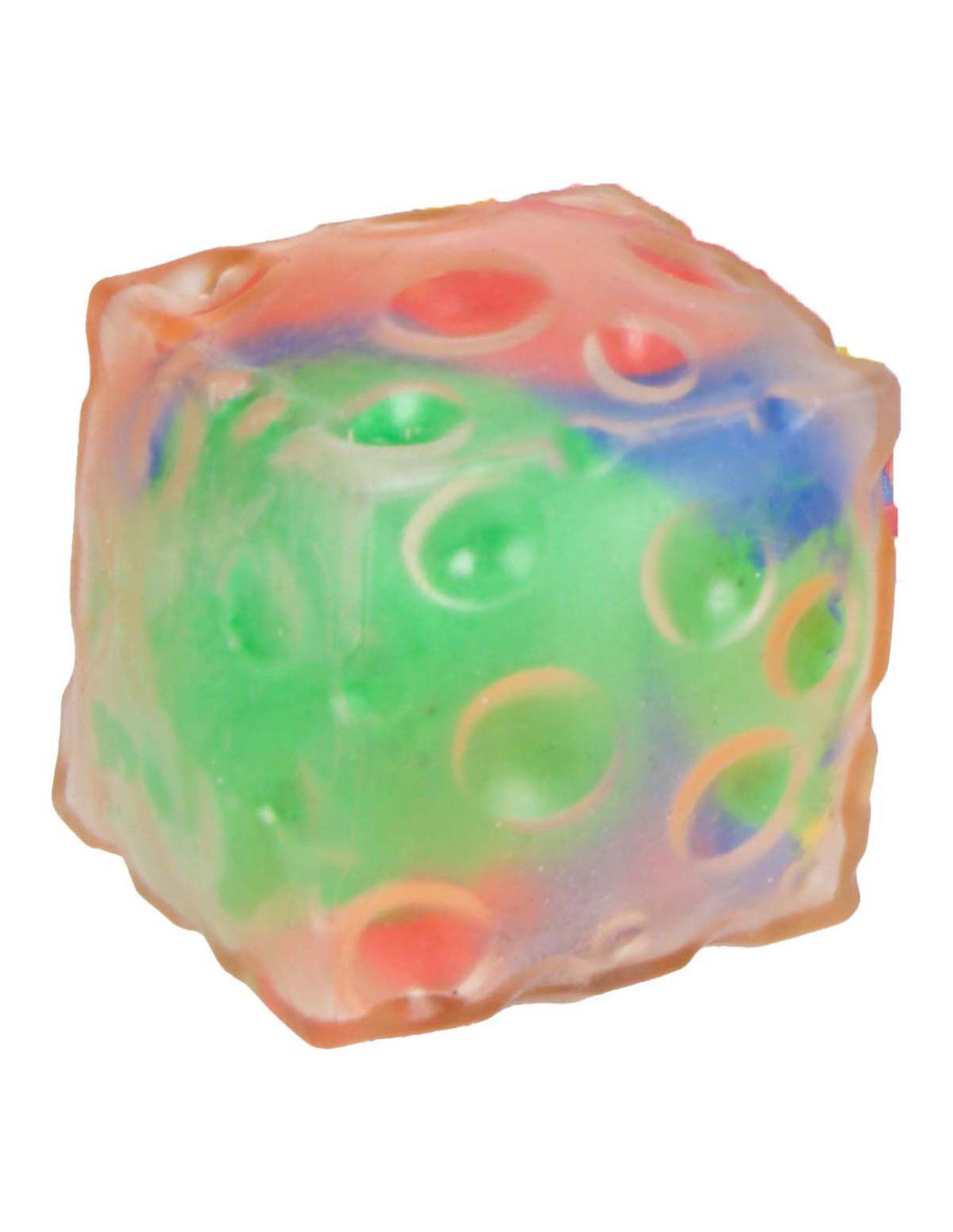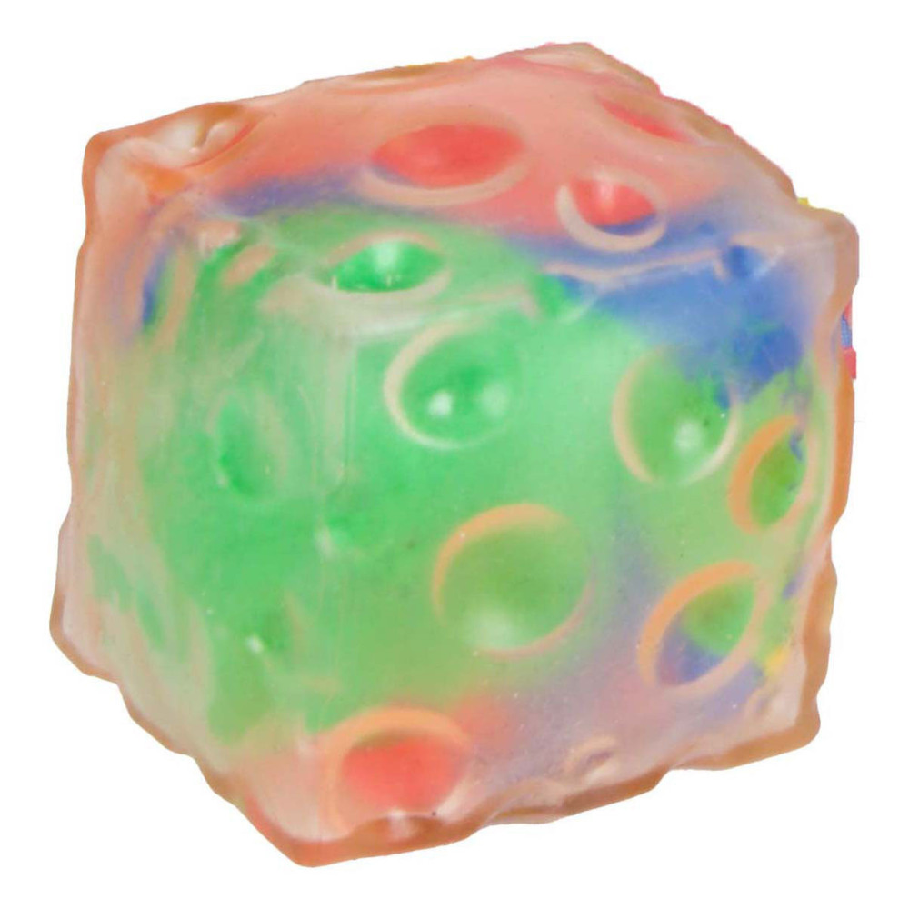 FUN Knijpkubus gevuld met klei. Afmetingen: 6 x 6 x 6 cm.