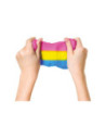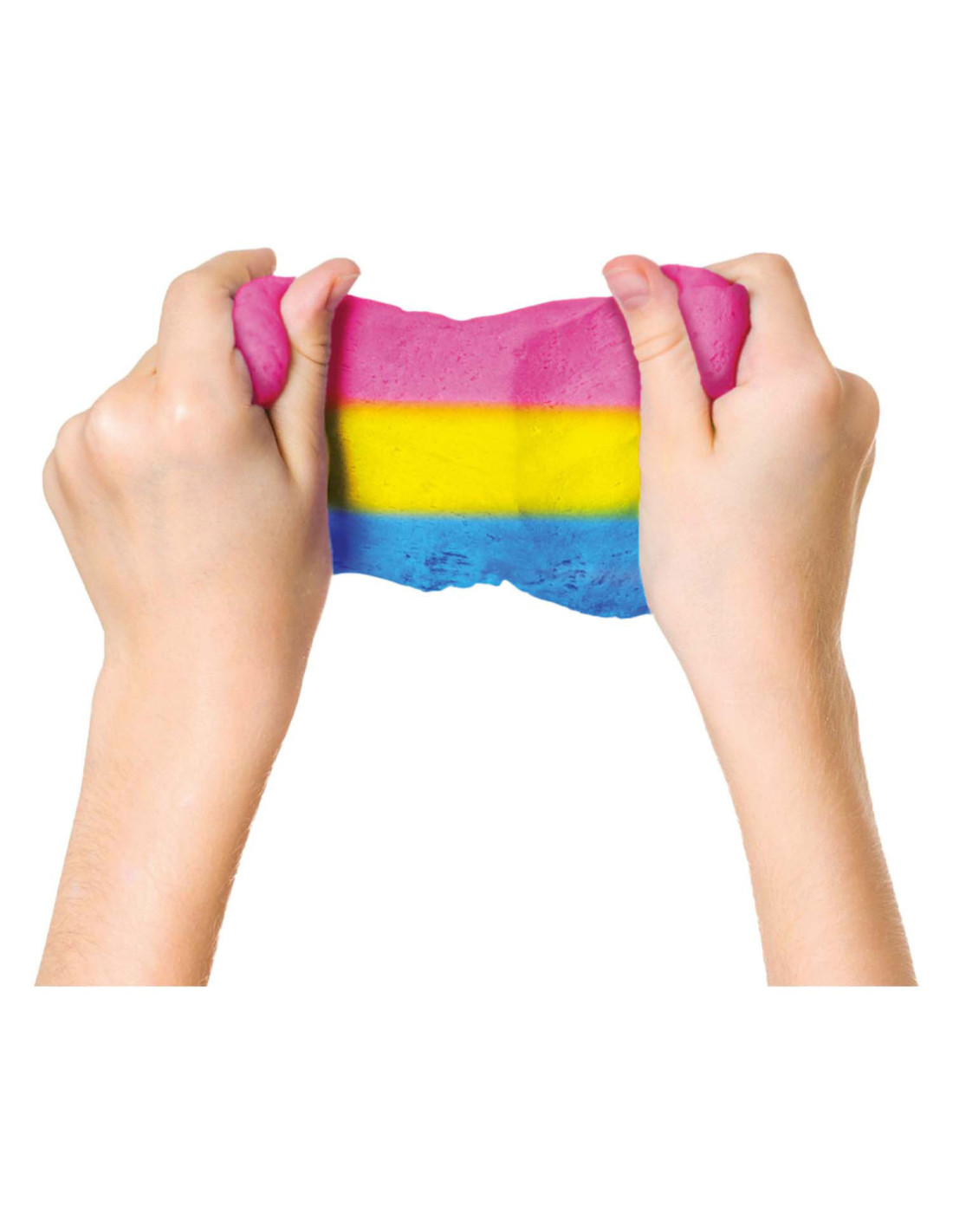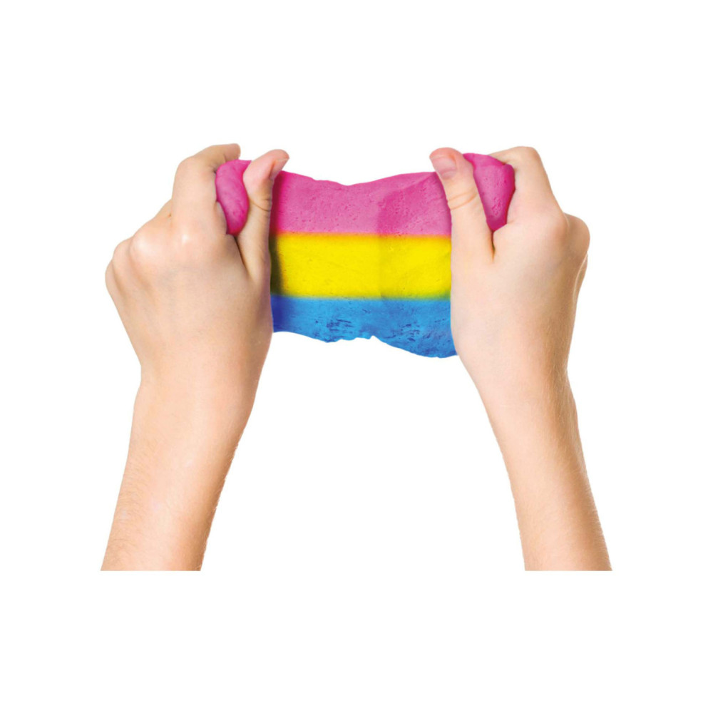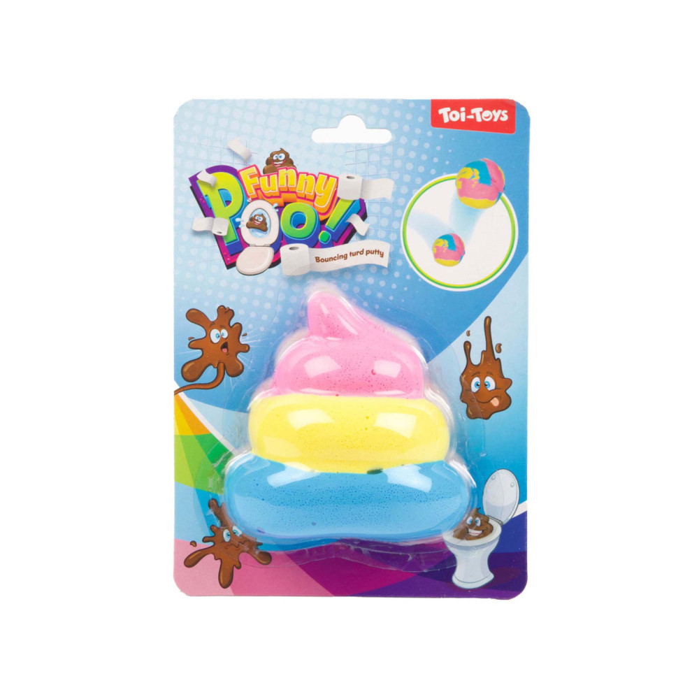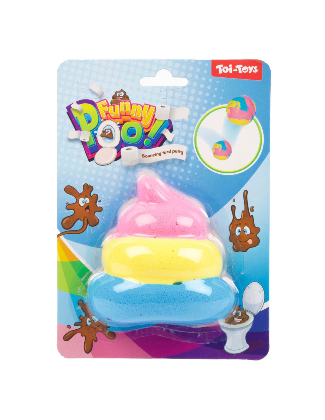 Kneedbare regenboog stuiterbal in de vorm van een drol.