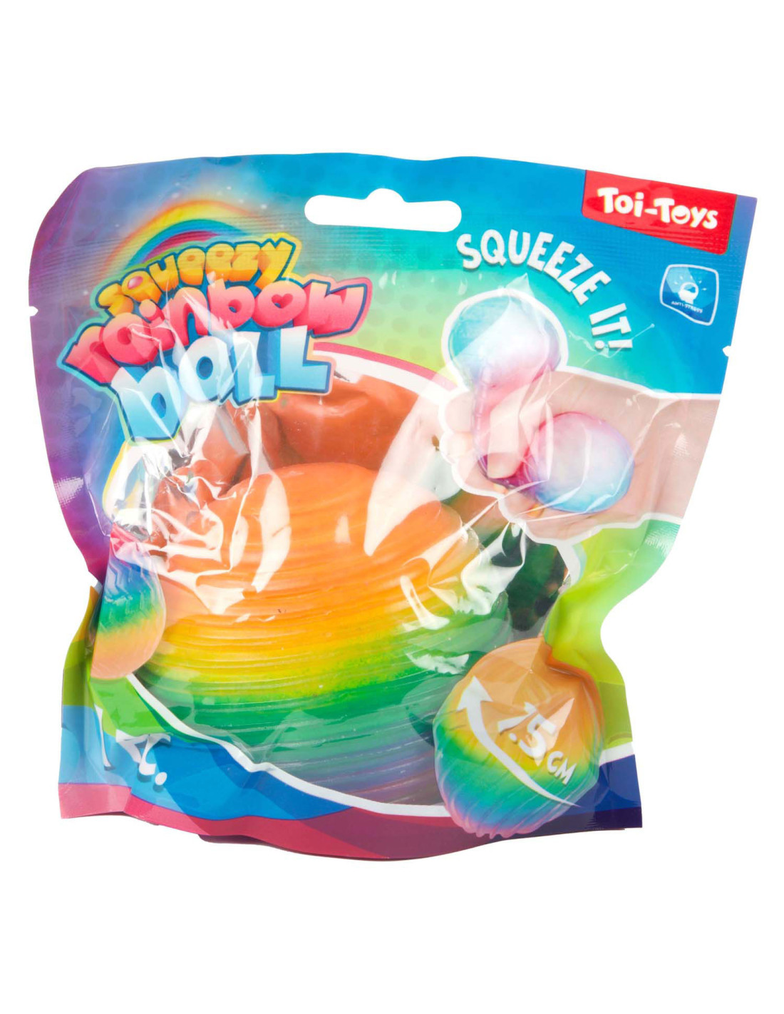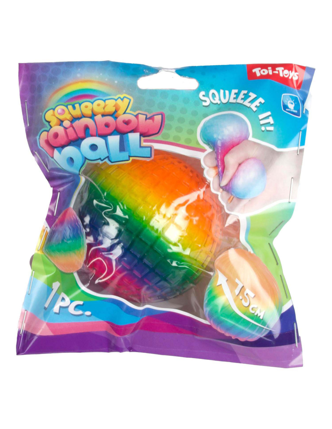 Regenboog textuurknijpbal foam, 7 cm.